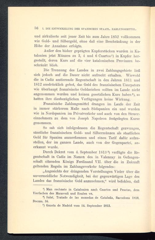 Durch Dekret vom 4. September 18133) verfügte die Re-gentschaft in Cadiz im Namen des in Valencay in Gefangen-schaft sitzenden Königs Ferdinand VII . über die in Zukunftgeltenden Regeln im Zahlungsverkehr folgendes: