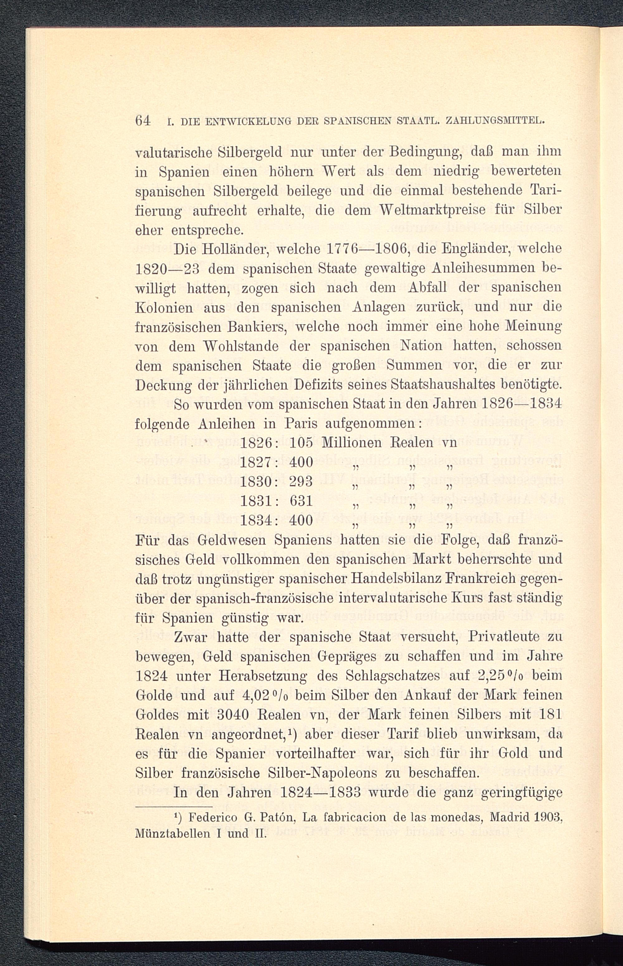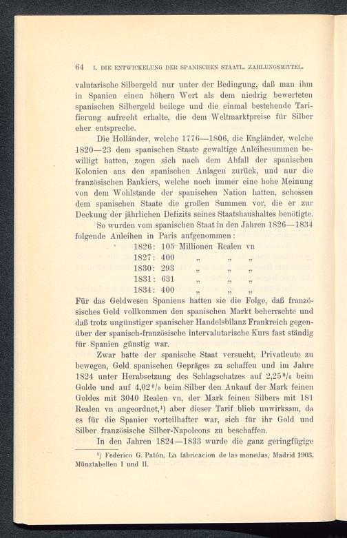 64 I. DIE ENTWICKELUNG DER SPANISCHEN STAATL. ZAHLUNGSMITTEL.