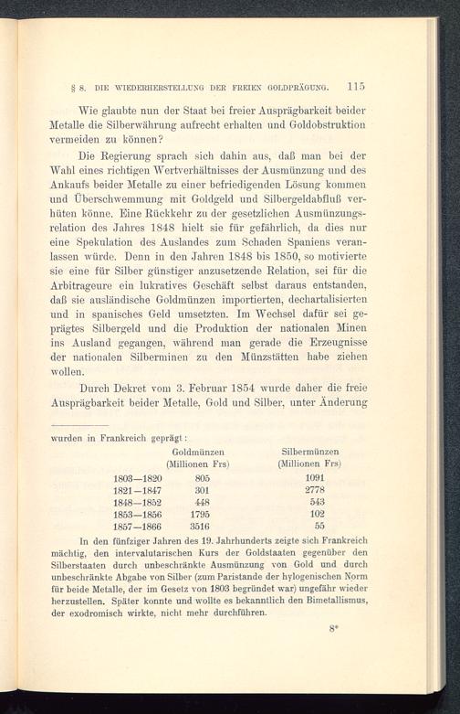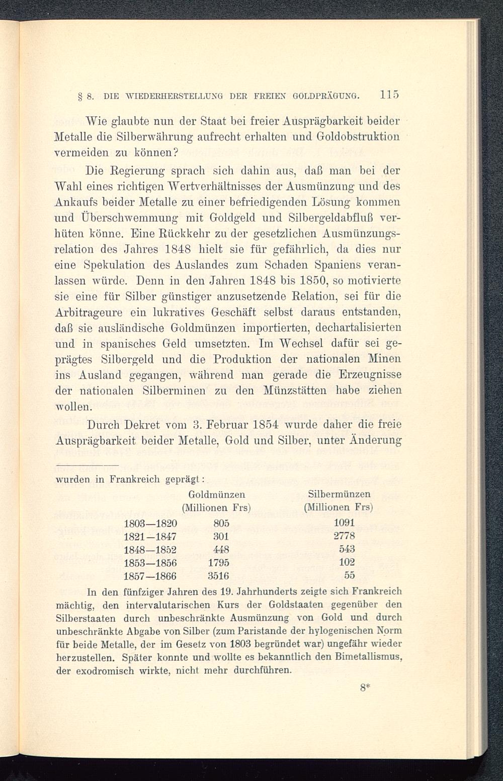 § 8. DIE WIEDERHERSTELLUNG DER FREIEN GOLDPRÄGUNG. 115