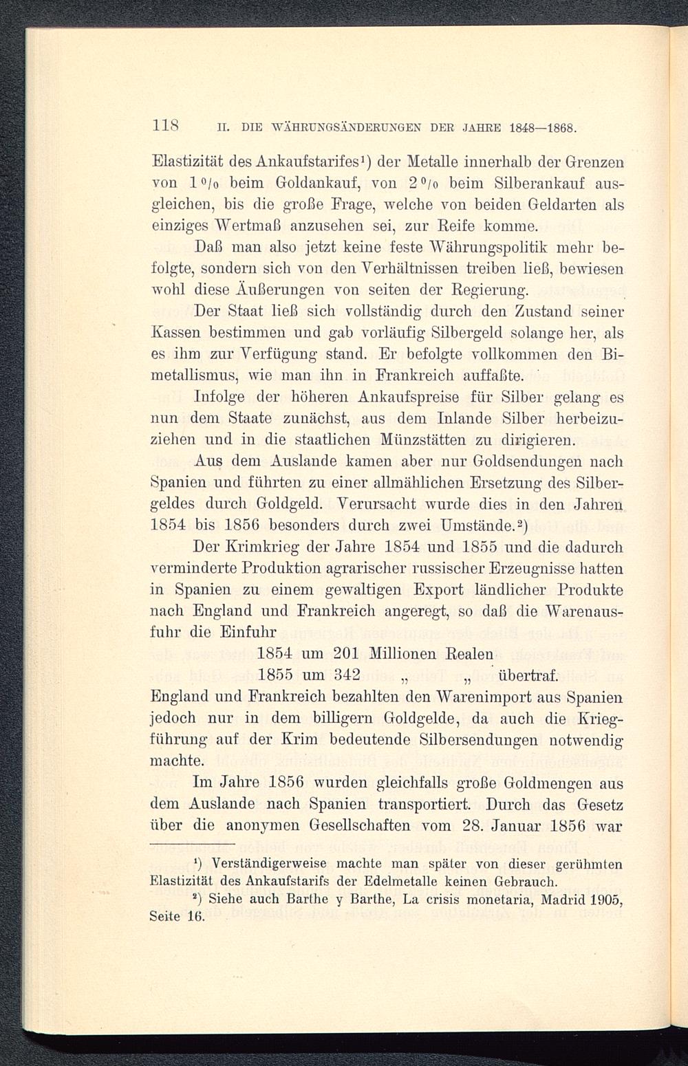 Im Jahre 1856 wurden gleichfalls große Goldmengen ausdem Auslande nach Spanien transportiert. Durch das Gesetzüber die anonymen Gesellschaften vom 28. Januar 1856 war
