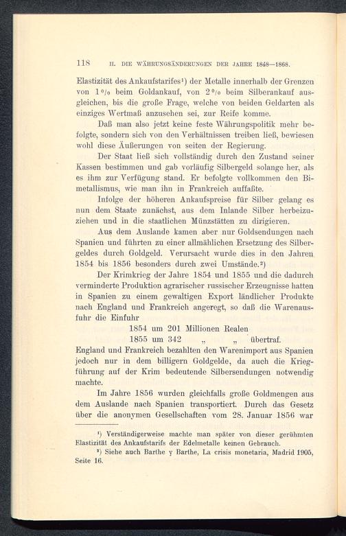 Aus dem Auslande kamen aber nur Goldsendungen nachSpanien und führten zu einer allmählichen Ersetzung des Silber-geldes durch Goldgeld. Verursacht wurde dies in den Jahren1854 bis 1856 besonders durch zwei Umstände. 2)