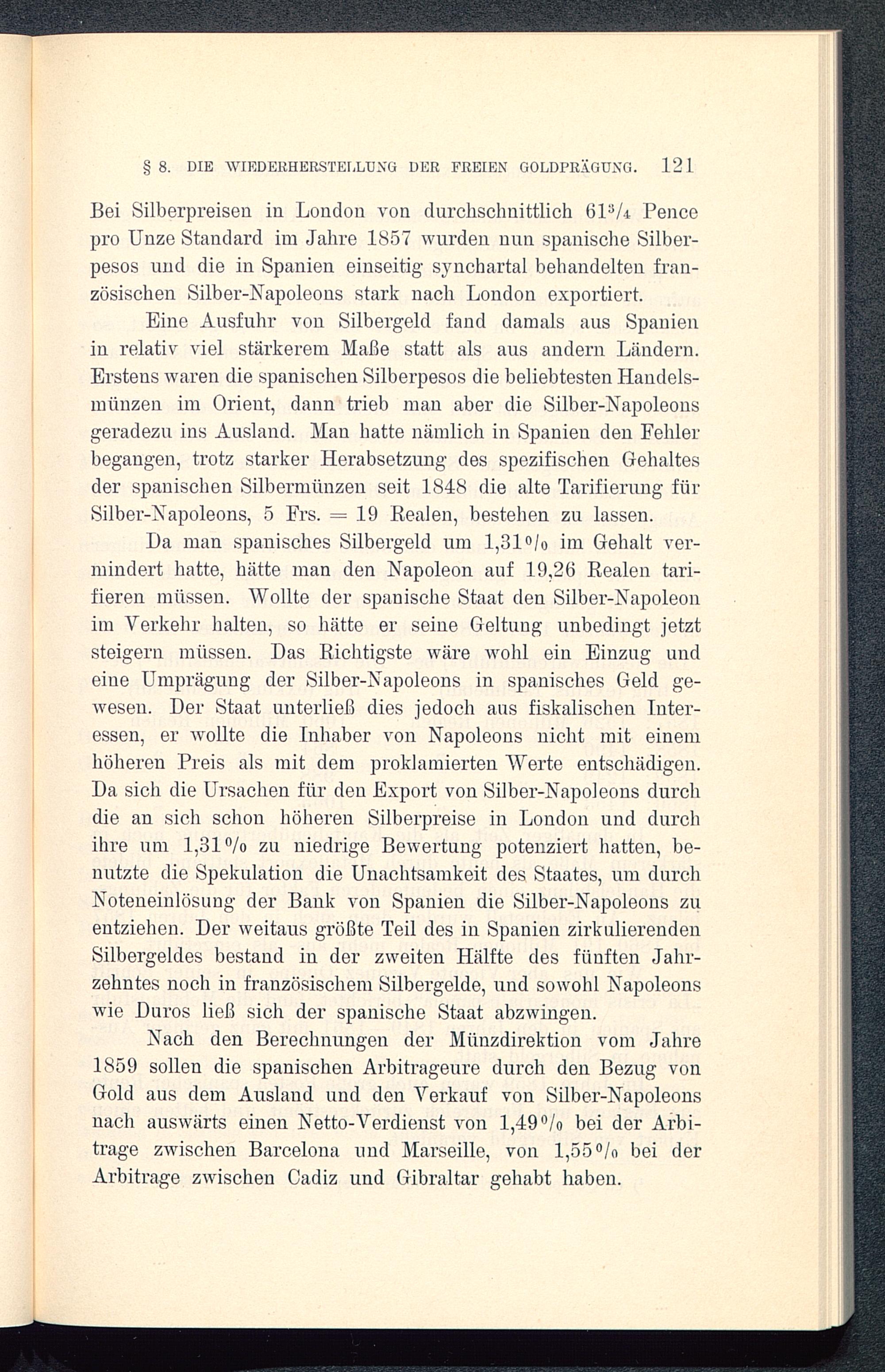 § 8. DIE WIEDERHERSTELLUNG DER FREIEN GOLDPRÄGUNG. 121