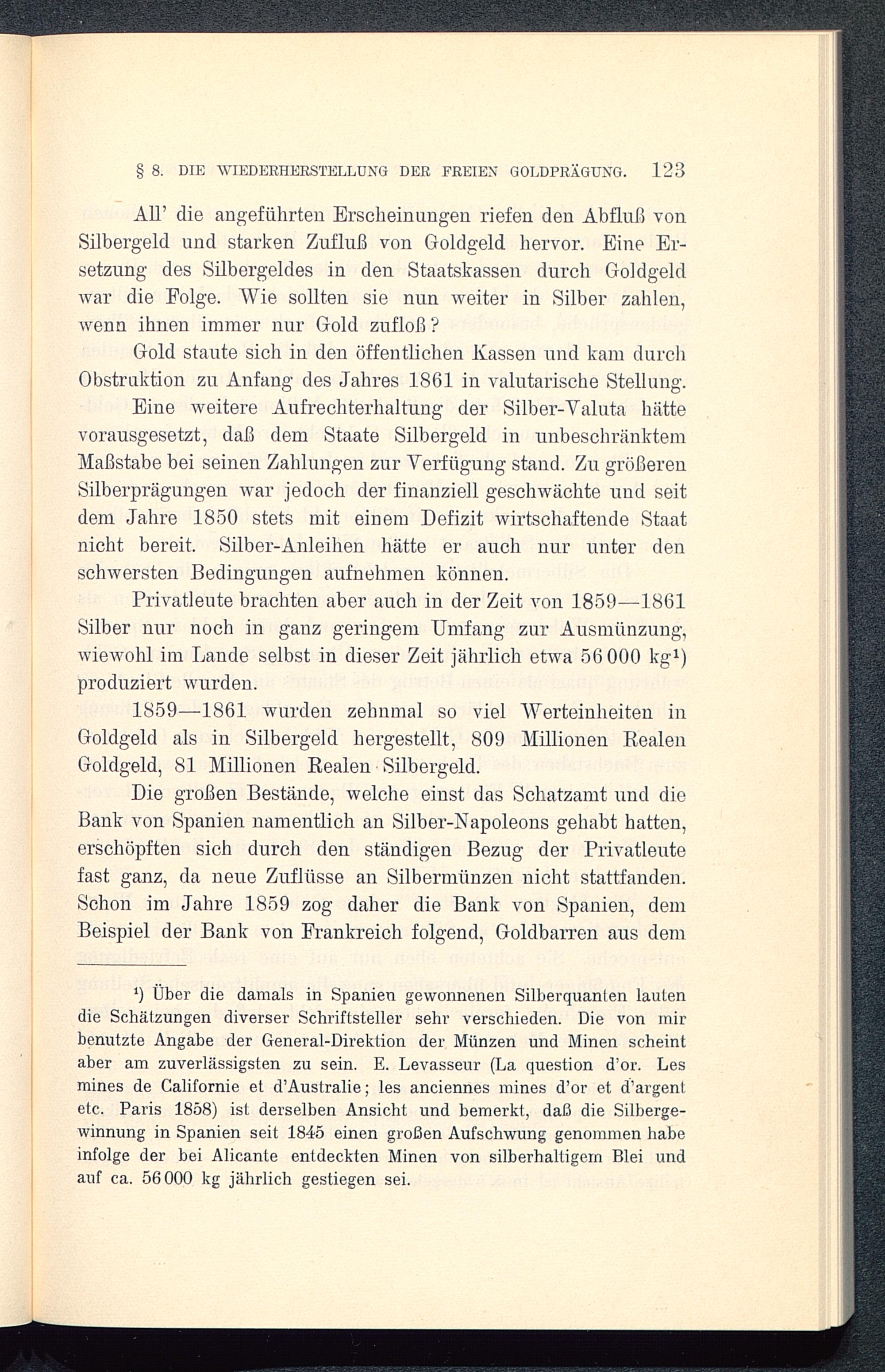 § 8. DIE WIEDERHERSTELLUNG DER FREIEN GOLDPRÄGUNG. 123