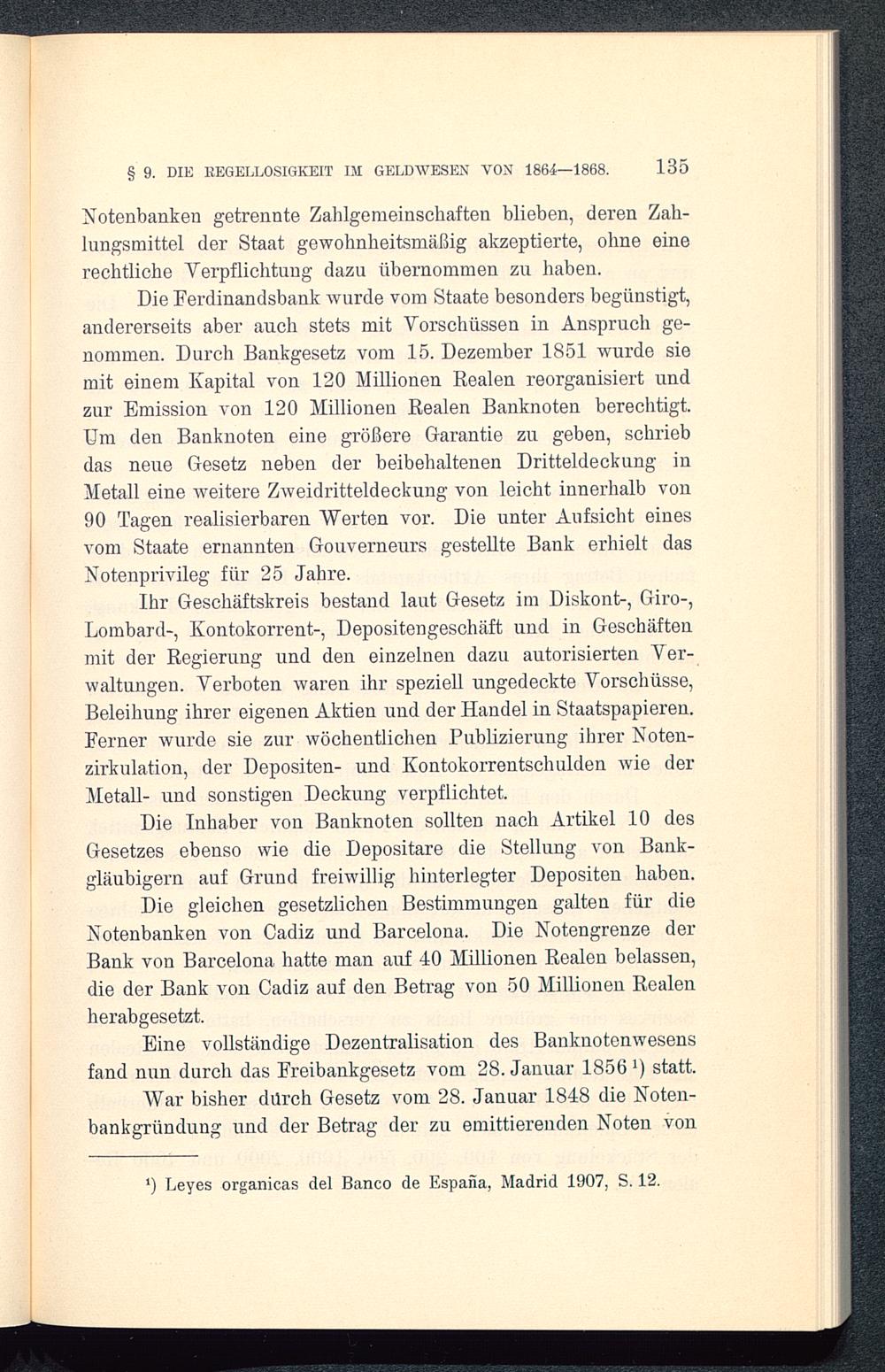 Die gleichen gesetzlichen Bestimmungen galten für dieNotenbanken von Cadiz und Barcelona. Die Notengrenze derBank von Barcelona hatte man auf 40 Millionen Realen belassen,die der Bank von Cadiz auf den Betrag von 50 Millionen Realenherabgesetzt.