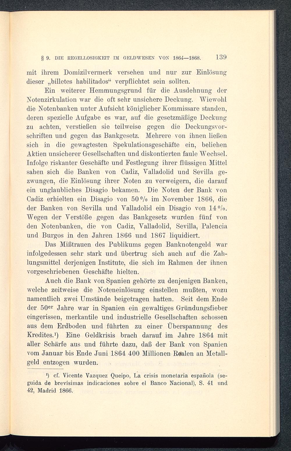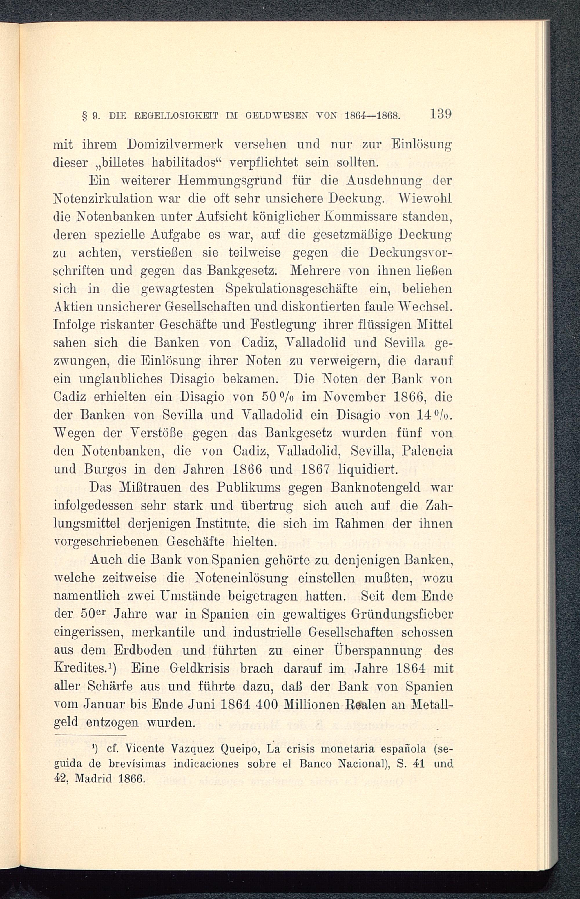 1) cf. Vicente Vazquez Queipo, La crisis monetaria española( se-guida de brevísimas indicaciones sobre el Banco Nacional), S. 41 und42, Madrid 1866.