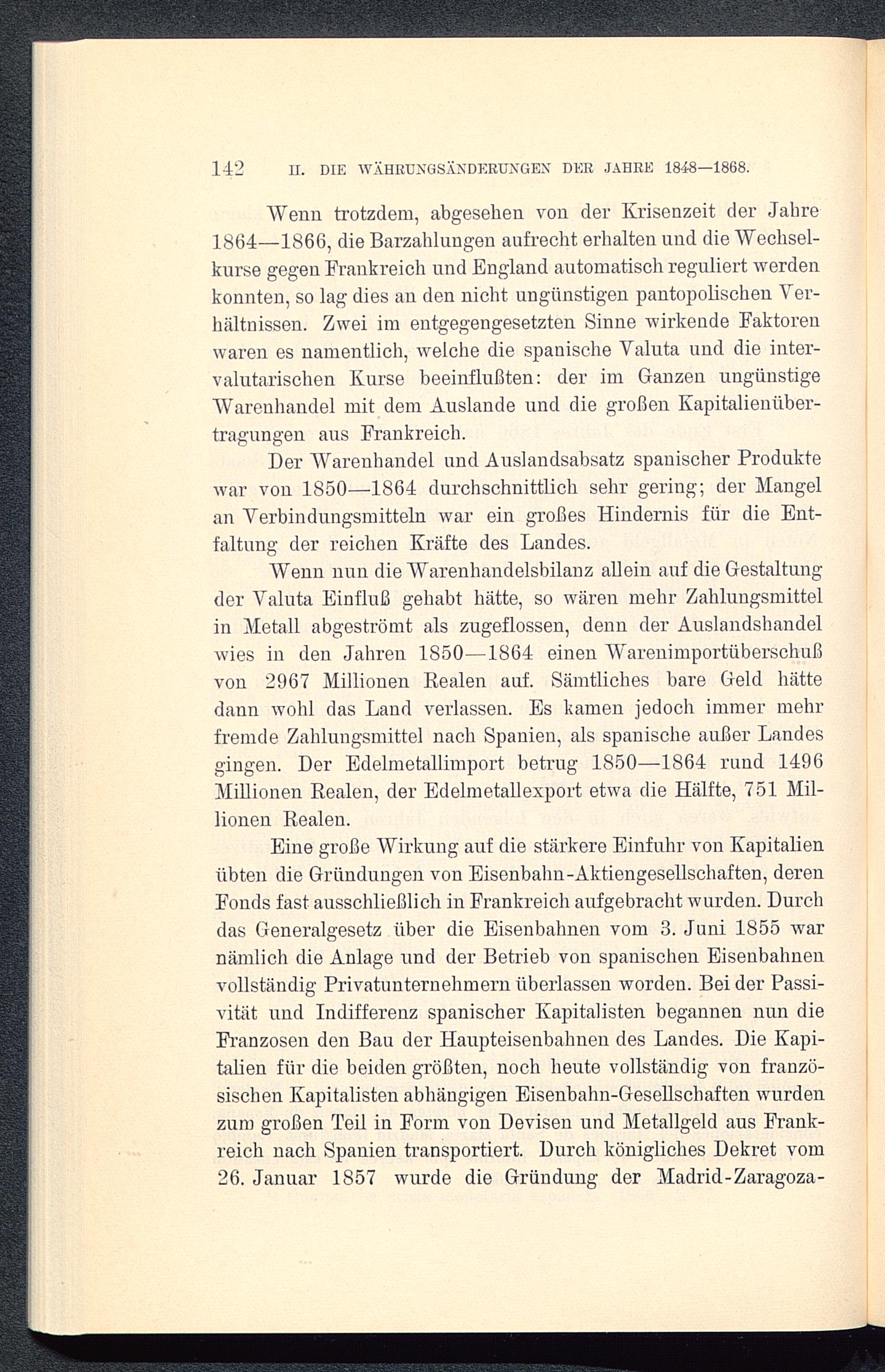 Der Warenhandel und Auslandsabsatz spanischer Produktewar von 1850-1864 durchschnittlich sehr gering; der Mangelan Verbindungsmitteln war ein großes Hindernis für die Ent-faltung der reichen Kräfte des Landes.