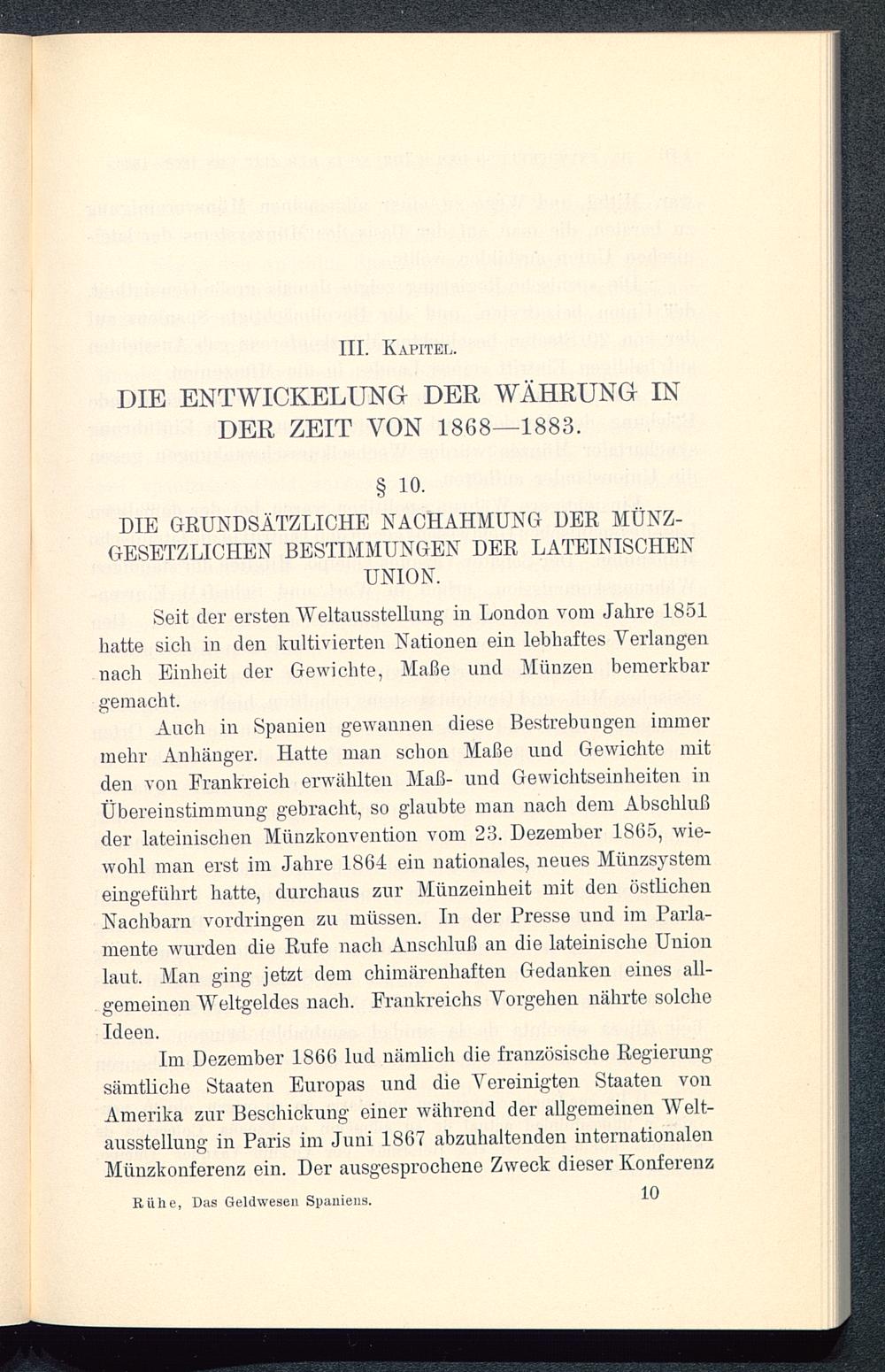 Auch in Spanien gewannen diese Bestrebungen immermehr Anhänger. Hatte man schon Maße und Gewichte mitden von Frankreich erwählten Maß- und Gewichtseinheiten inÜbereinstimmung gebracht, so glaubte man nach dem Abschlußder lateinischen Münzkonvention vom 23. Dezember 1865, wie-wohl man erst im Jahre 1864 ein nationales, neues Münzsystemeingeführt hatte, durchaus zur Münzeinheit mit den östlichenNachbarn vordringen zu müssen. In der Presse und im Parla-mente wurden die Rufe nach Anschluß an die lateinische Unionlaut. Man ging jetzt dem chimärenhaften Gedanken eines all-gemeinen Weltgeldes nach. Frankreichs Vorgehen nährte solcheIdeen.