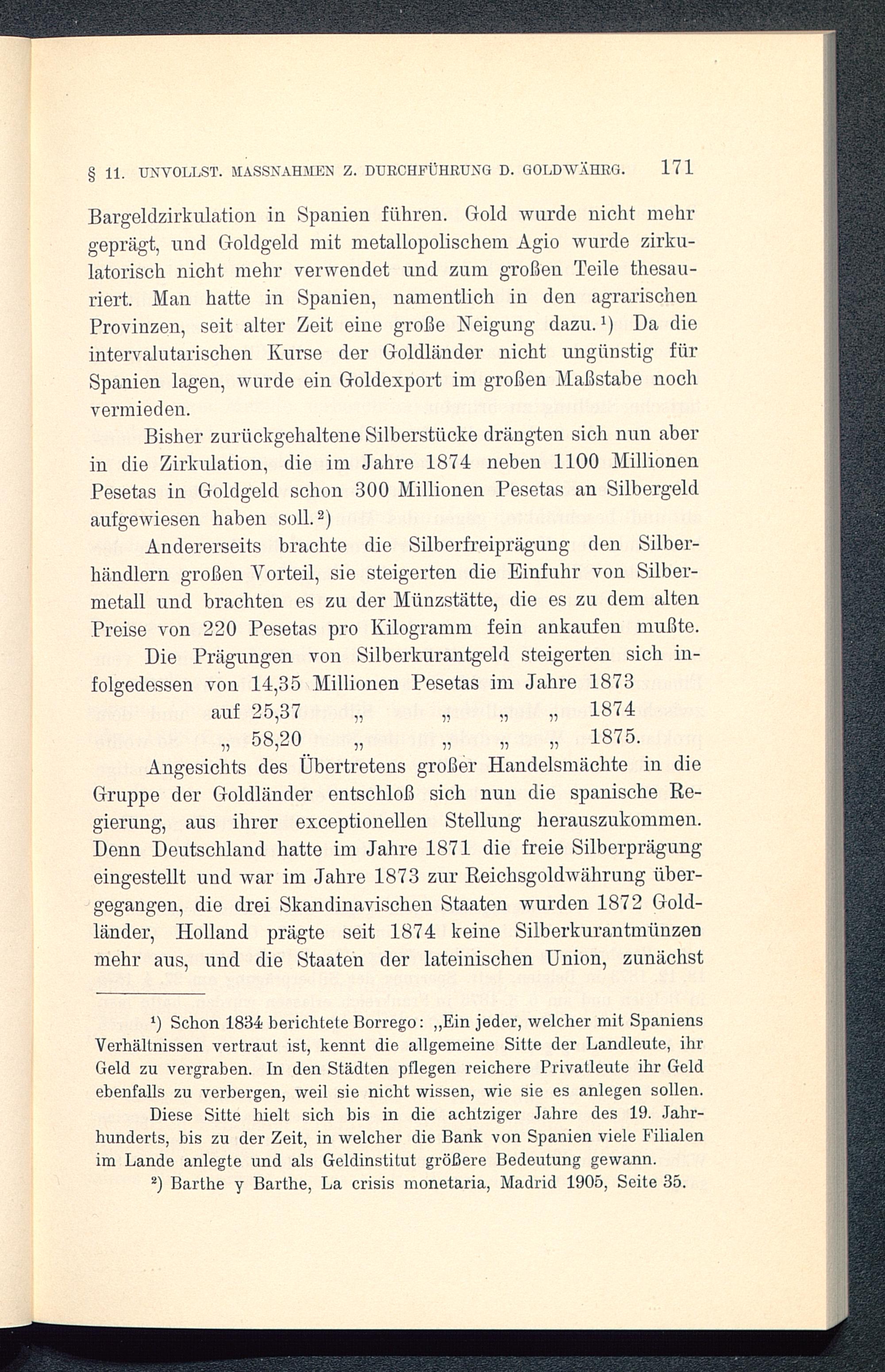 2) Barthe y Barthe, La crisis monetaria, Madrid 1905, Seite 35.