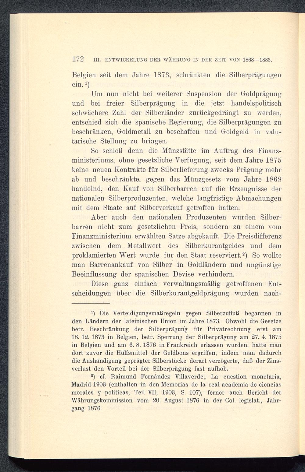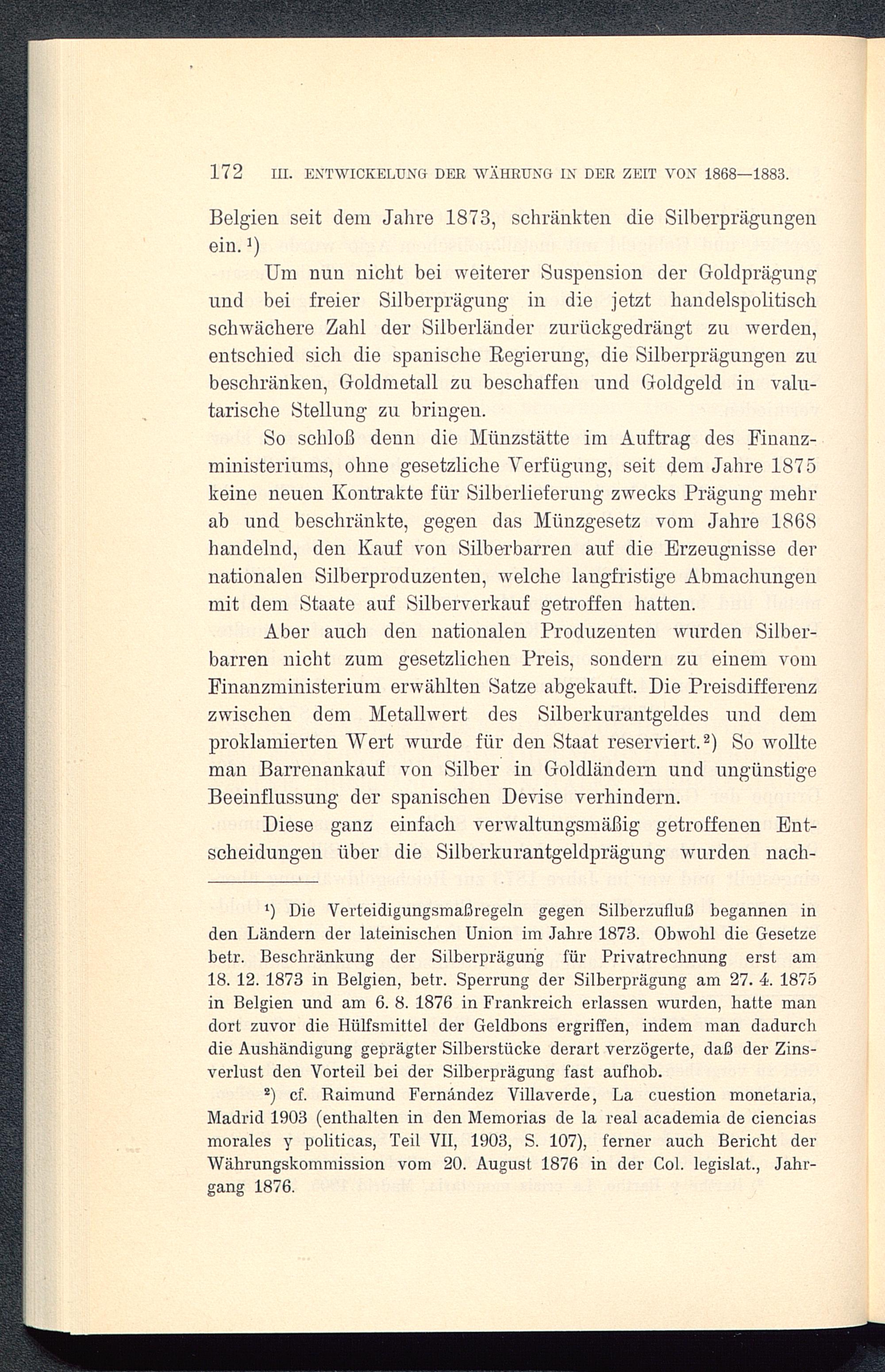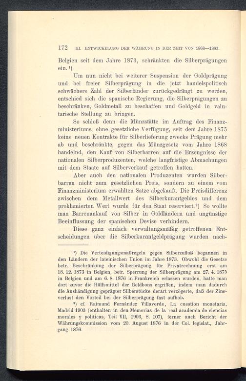 2) cf. Raimund Fernández Villaverde, La cuestion monetaria,Madrid 1903( enthalten in den Memorias de la real academia de cienciasmorales y politicas, Teil VII, 1903, S. 107), ferner auch Bericht derWährungskommission vom 20. August 1876 in der Col. legislat., Jahr-gang 1876.