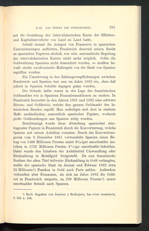 Die Gründe dafür waren in der Lage des französischen Geldmarktes wie in Spaniens Finanztransaktionen zu suchen. InFrankreich herrschte in den Jahren 1881 und 1882 eine schwereBörsen- und Geldkrisis, welche den ganzen Geldmarkt des la-teinischen Bundes ergriff. Man entledigte sich dort in starkemMaße ausländischer, namentlich spanischer Papiere, wodurchgroße Goldsendungen aus Spanien nötig wurden.