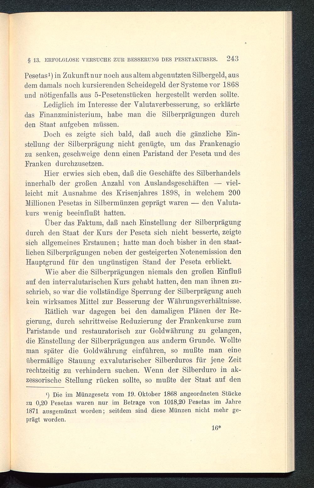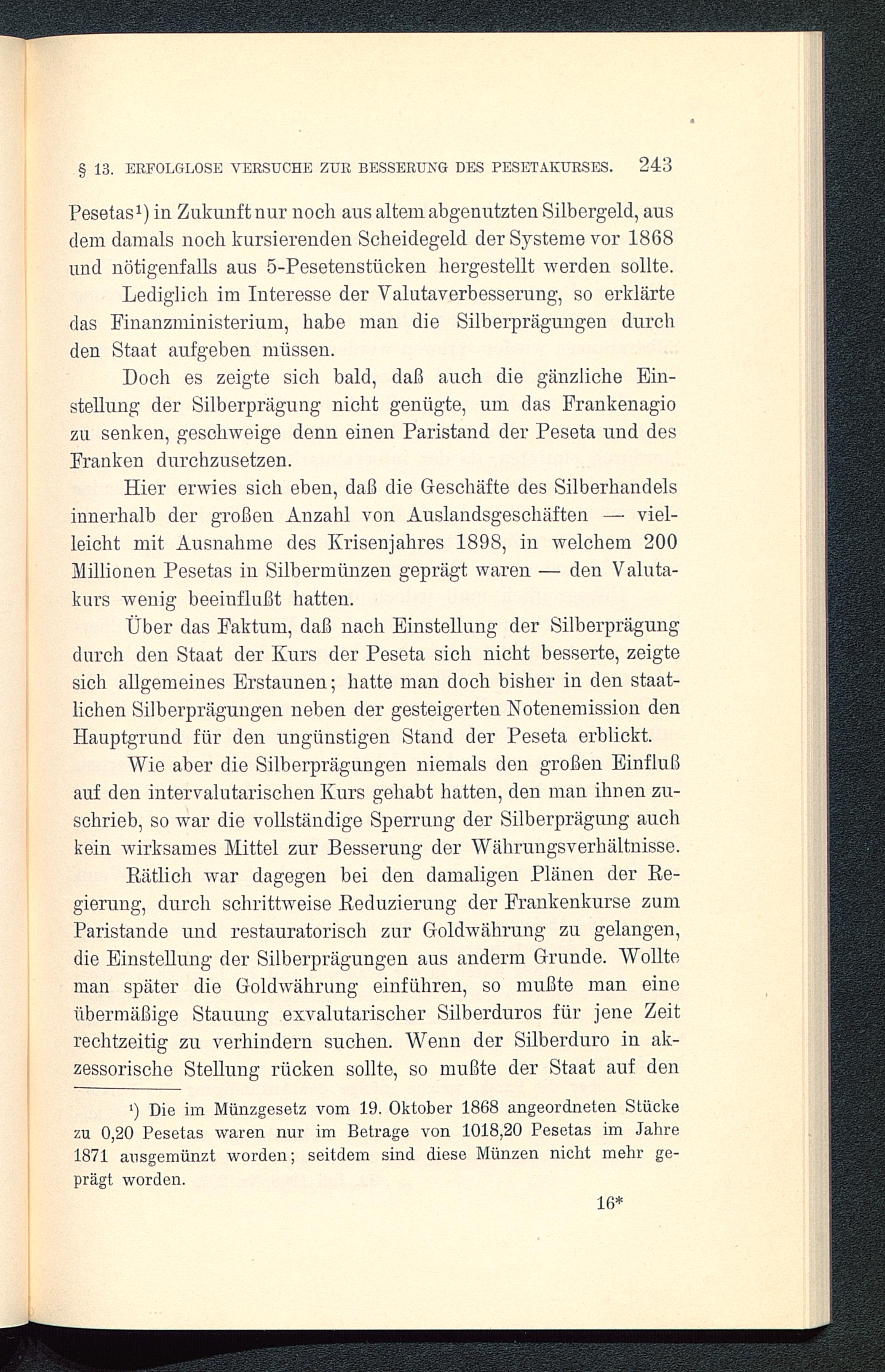 Pesetas¹) in Zukunft nur noch aus altem abgenutzten Silbergeld, ausdem damals noch kursierenden Scheidegeld der Systeme vor 1868und nötigenfalls aus 5- Pesetenstücken hergestellt werden sollte.
