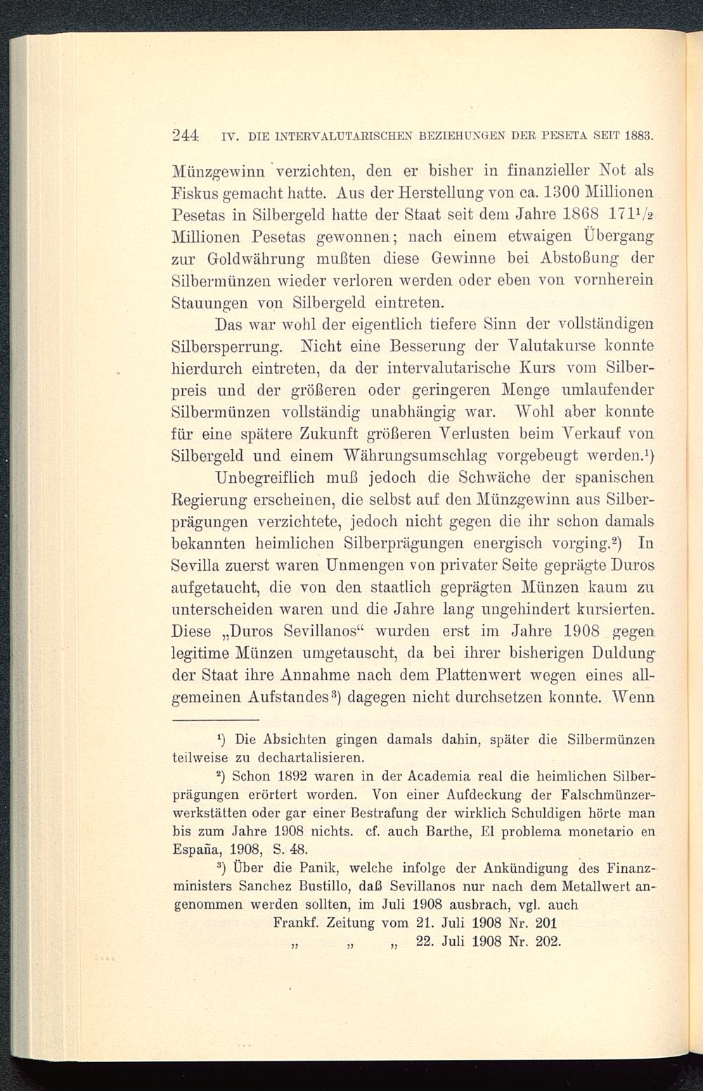 244 IV. DIE INTERVALUTARISCHEN BEZIEHUNGEN DER PESETA SEIT 1883.