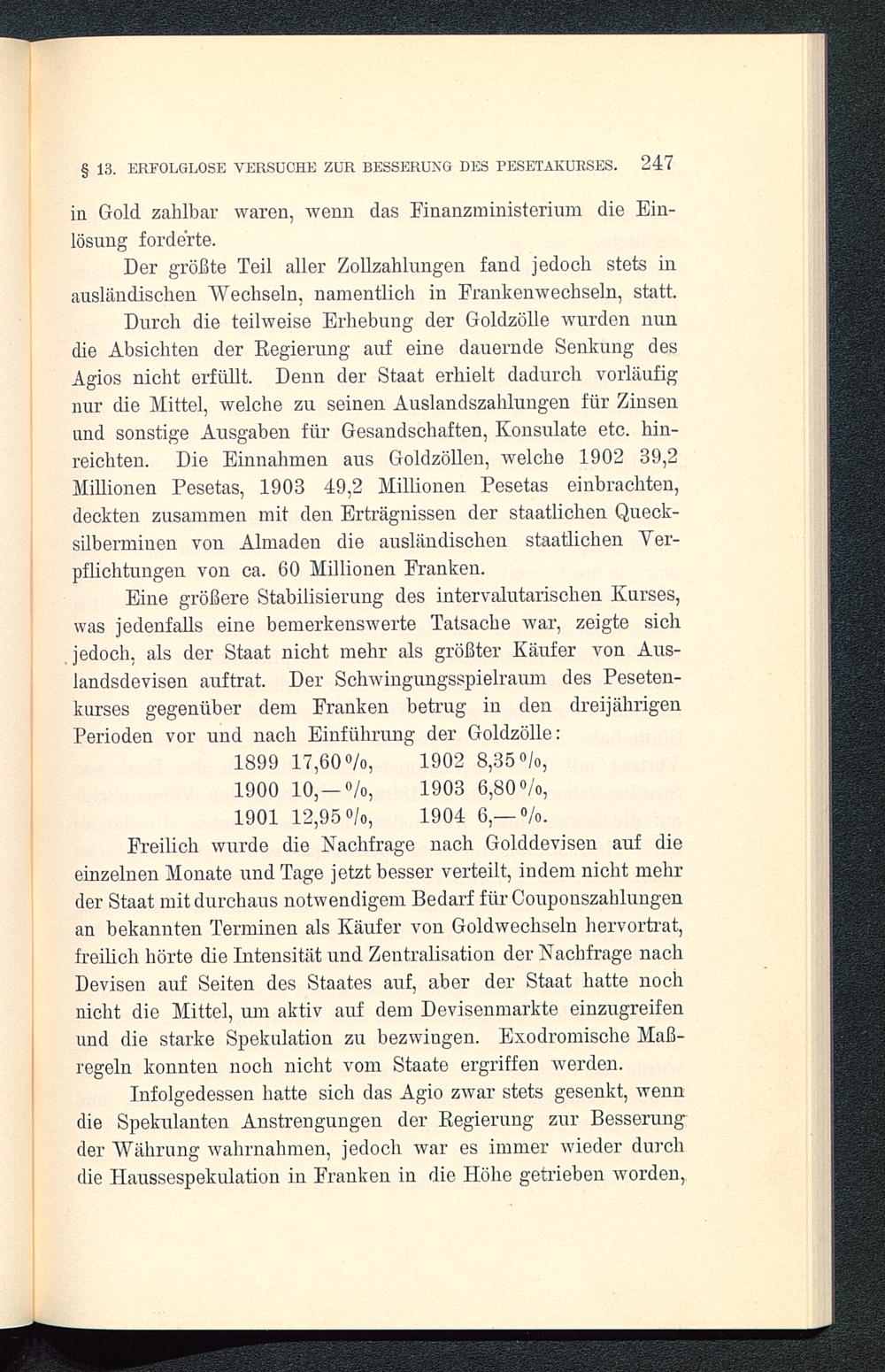 § 13. ERFOLGLOSE VERSUCHE ZUR BESSERUNG DES PESETAKURSES. 247