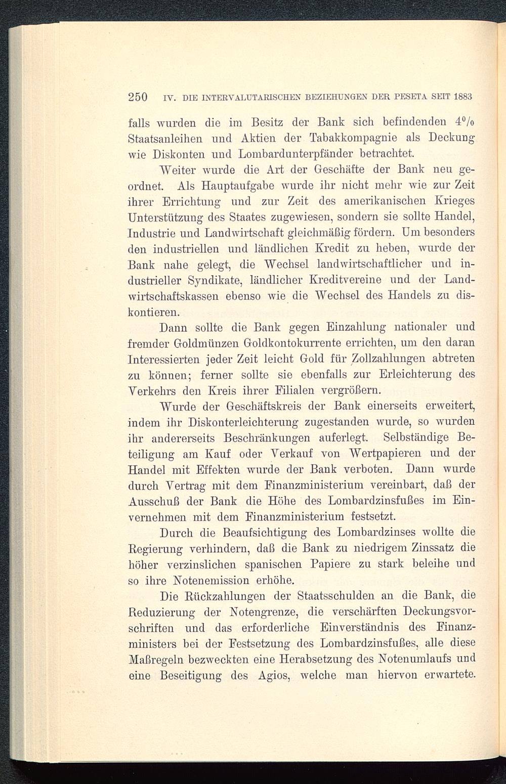 250 IV. DIE INTERVALUTARISCHEN BEZIEHUNGEN DER PESETA SEIT 1883