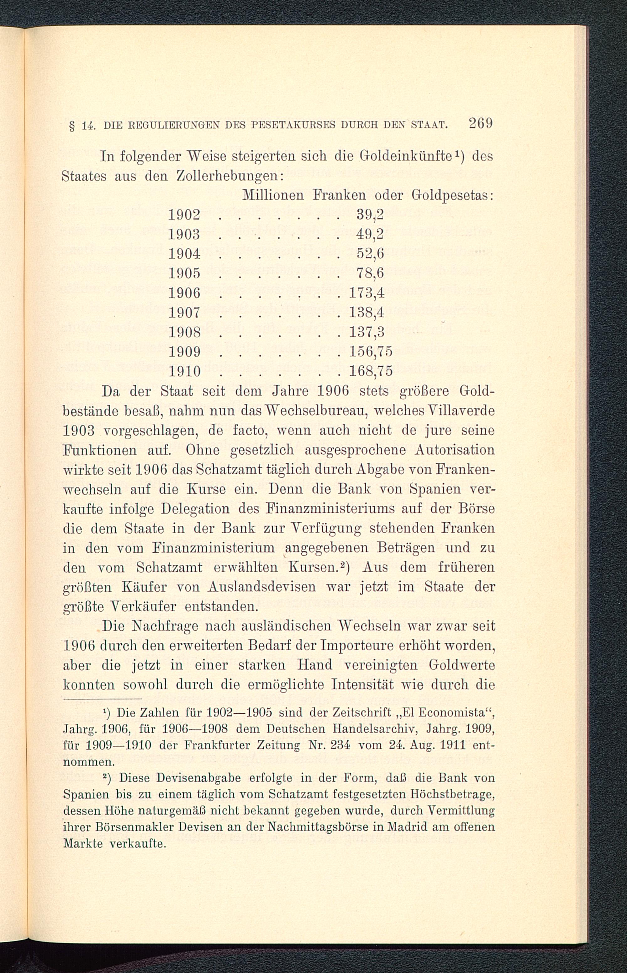 § 14. DIE REGULIERUNGEN DES PESETAKURSES DURCH DEN STAAT. 269