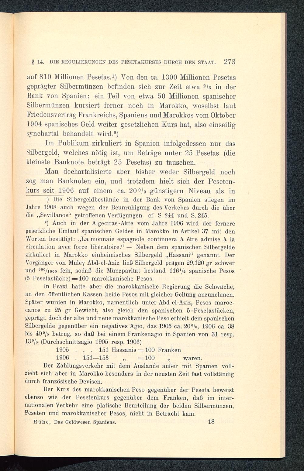 § 14. DIE REGULIERUNGEN DES PESETAKURSES DURCH DEN STAAT. 273