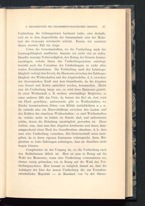 Oomplicirter ist der Vorgang da, avo die Vertheilung nachden Bedürfnissen üblich ist. Hier ist man in Bezug auf dieWahl des Momentes, wann eine Umtheilung vorzunehmen sei,ebenso Avenig gebunden, Avie in Bezug auf die Wahl des Ver-theilungssystems. Hier kommt es lediglich darauf an, dass dieAnhänger der Idee der neuen Umtheilung die zur Vornahmeerforderliche Majorität — in Russland von 2 h der Stimm-