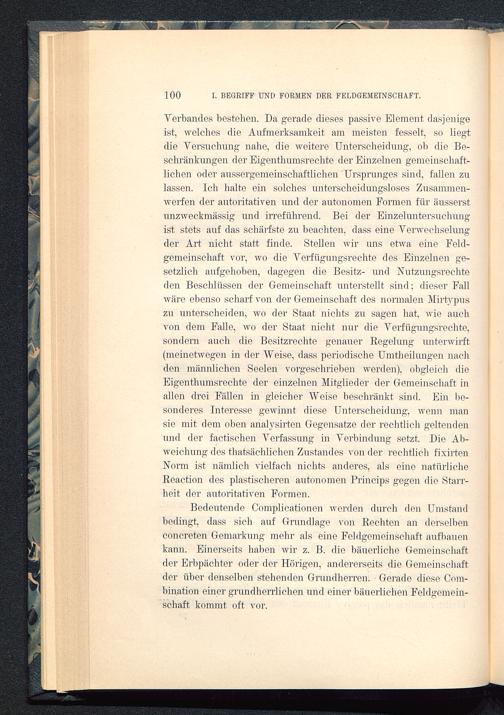 Bedeutende Complicationen Averden durch den Umstandbedingt, dass sich auf Grundlage von Rechten an derselbenconcreten Gemarkung mehr als eine Feldgemeinschaft aufbauenkann. Einerseits haben Avir z. B. die bäuerliche Gemeinschaftder Erbpächter oder der Hörigen, andererseits die Gemeinschaftder über denselben stehenden Grundherren. Gerade diese Com-bination einer grundherrlichen und einer bäuerlichen Feldgemein-schaft kommt oft A r or.