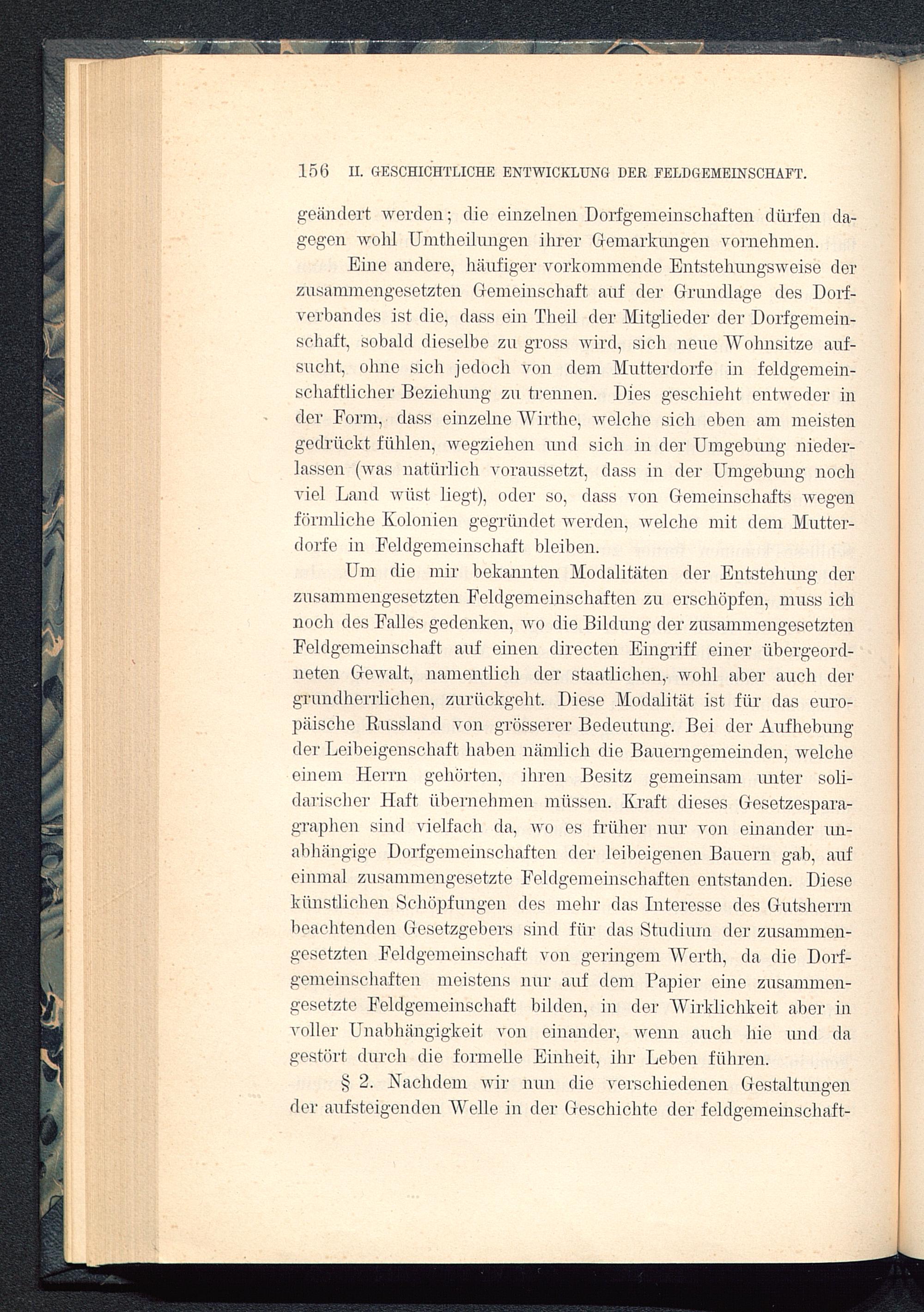 Um die mir bekannten Modalitäten der Entstehung derzusammengesetzten Feldgemeinschaften zu erschöpfen, muss ichnoch des Falles gedenken, wo die Bildung der zusammengesetztenFeldgemeinschaft auf einen directen Eingriff einer übergeord-neten Gewalt, namentlich der staatlichen,, wohl aber auch dergrundherrlichen, zurückgeht. Diese Modalität ist für das euro-päische Bussland von grösserer Bedeutung. Bei der Aufhebungder Leibeigenschaft haben nämlich die Bauerngemeinden, welcheeinem Herrn gehörten, ihren Besitz gemeinsam imter soli-darischer Haft übernehmen müssen. Kraft dieses Gesetzespara-graphen sind vielfach da, wo es früher nur von einander un-abhängige Dorfgemeinschaften der leibeigenen Bauern gab, aufeinmal zusammengesetzte Feldgemeinschaften entstanden. Diesekünstlichen Schöpfungen des mehr das Interesse des Gutsherrnbeachtenden Gesetzgebers sind für das Studium der zusammen-gesetzten Feldgemeinschaft von geringem Werth, da die Dorf-gemeinschaften meistens nur auf dem Papier eine zusammen-gesetzte Feldgemeinschaft bilden, in der Wirklichkeit aber involler Unabhängigkeit von einander, wenn auch hie und dagestört durch die formelle Einheit, ihr Leben führen.