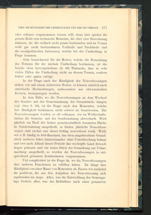 oder seltener vorgenommen wissen will; denn hier spielen diegrösste Rolle rein technische Momente, die eher eine Berechnungzulassen, als die vielfach nicht genau bestimmten und im Vorauswohl gar nicht bestimmbaren Vortheile und Nachtheile unddie socialpolitischen Interessen, welche bei der Umtheilung inFrage kommen.