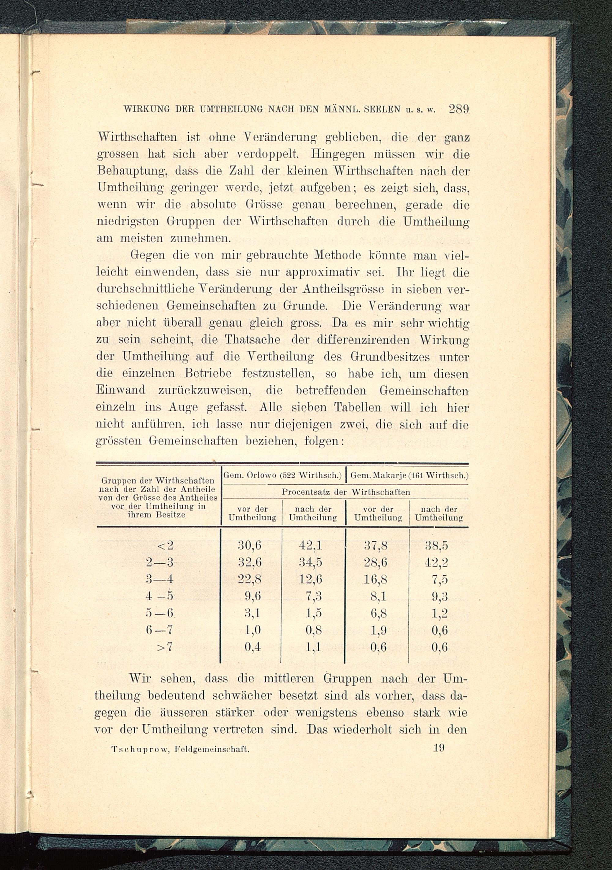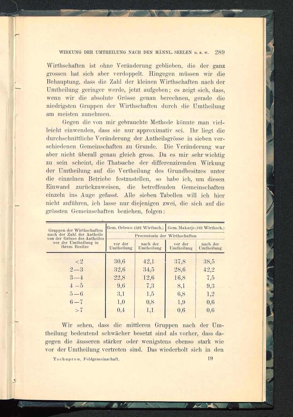 Gruppen der Wirthschaftennach der Zahl der Antheilevon der Grösse des Antheilesvor der Umtheilung inihrem Besitze