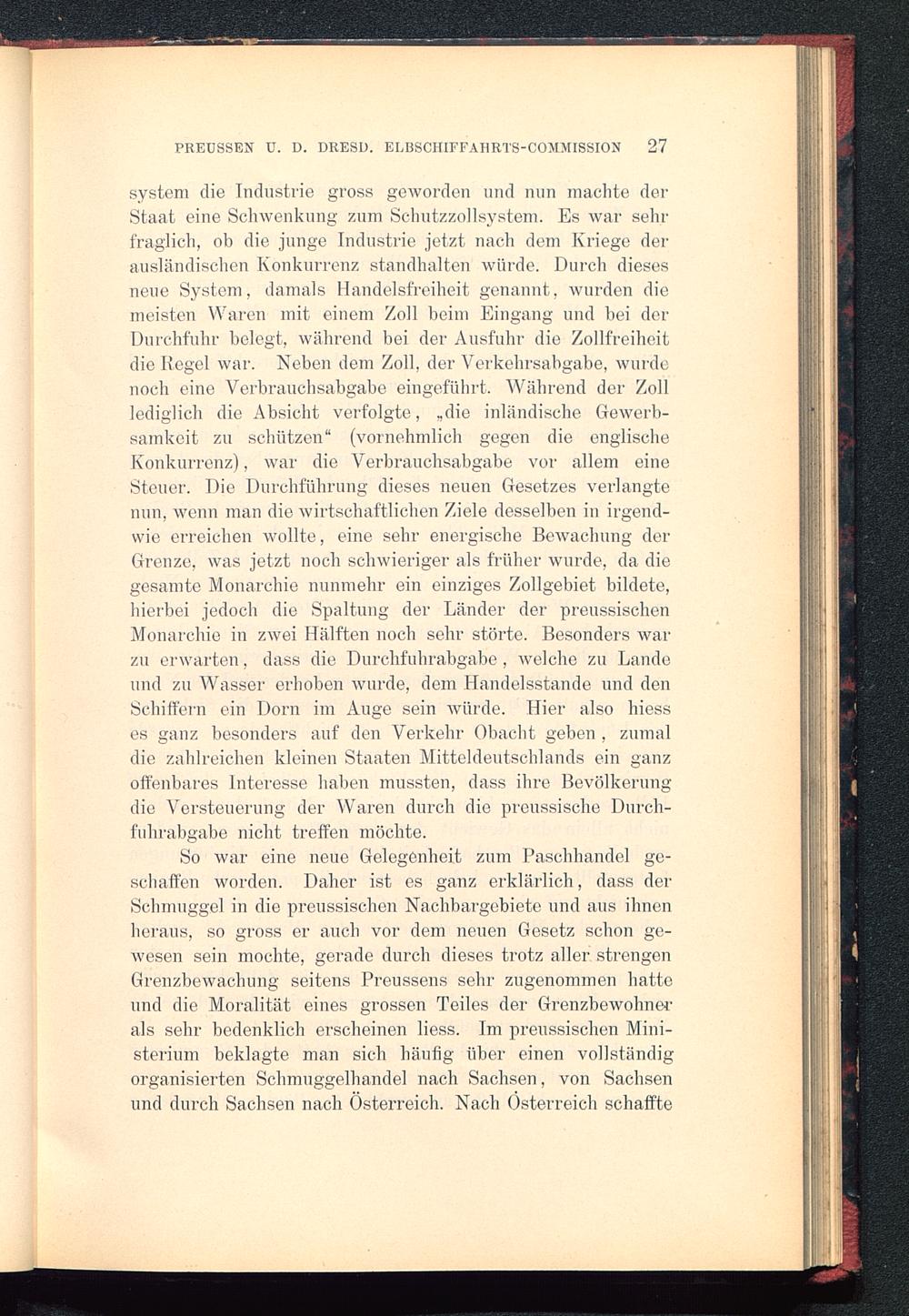 So war eine neue Gelegenheit zum Paschhandel ge-schaffen worden. Daher ist es ganz erklärlich, dass derSchmuggel in die preussischen Nachbargebiete und aus ihnenheraus, so gross er auch vor dem neuen Gesetz schon ge-wesen sein mochte, gerade durch dieses trotz aller strengenGrenzbewachung seitens Preussens sehr zugenommen hatteund die Moralität eines grossen Teiles der Grenzbewohnerals sehr bedenklich erscheinen liess. Im preussischen Mini-sterium beklagte man sich häufig über einen vollständigorganisierten Schmuggelhandel nach Sachsen, von Sachsenund durch Sachsen nach Österreich. Nach Österreich schaffte