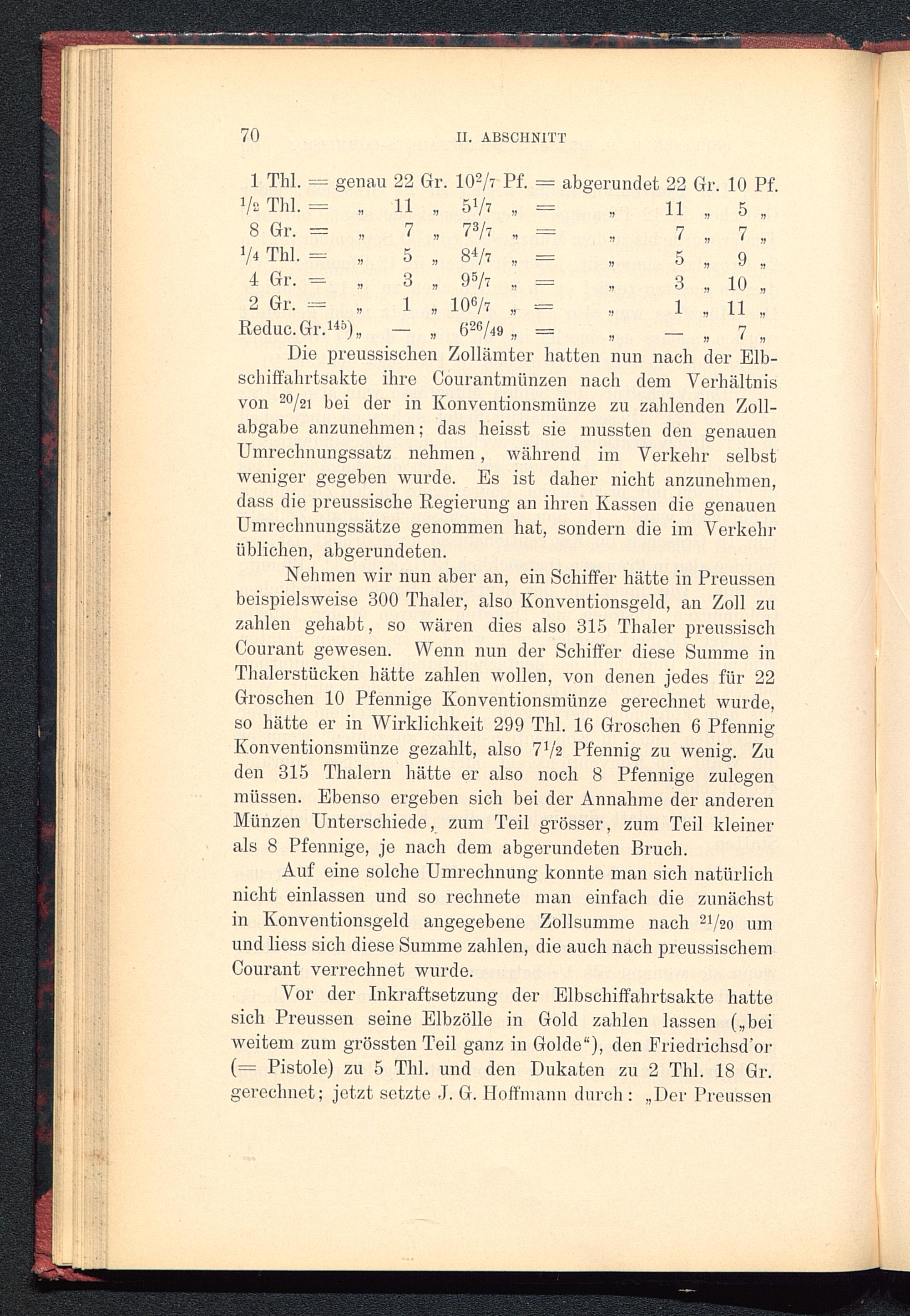 Vor der Inkraftsetzung der Elbschiffahrtsakte hattesich Preussen seine Elbzölle in Gold zahlen lassen („beiweitem zum grössten Teil ganz in Golde“), den Friedriehsd’or(= Pistole) zu 5 Thl. und den Dukaten zu 2 Thl. 18 Gr.gerechnet; jetzt setzte J. G. lloffmann durch : „Der Preussen