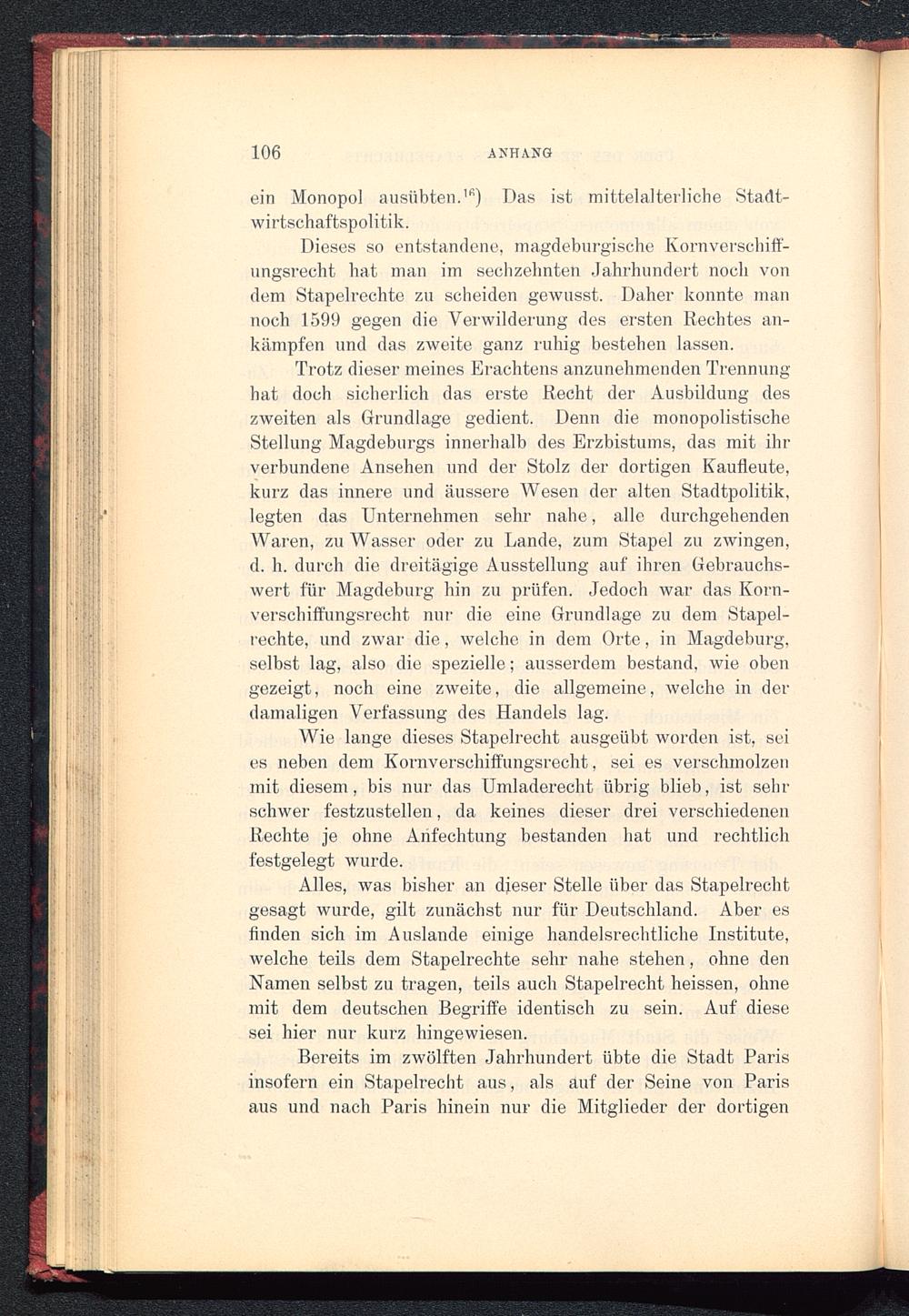 Dieses so entstandene, magdeburgische Kornverschiff-ungsrecht hat man im sechzehnten Jahrhundert noch vondem Stapelrechte zu scheiden gewusst. Daher konnte mannoch 1599 gegen die Verwilderung des ersten Rechtes an-kämpfen und das zweite ganz ruhig bestehen lassen.