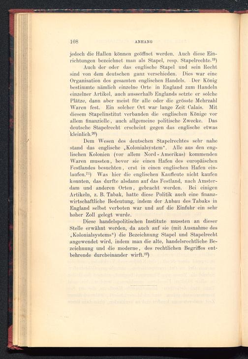 Diese handelspolitischen Institute mussten an dieserStelle erwähnt werden, da auch auf sie (mit Ausnahme des„Kolonialsystems“) die Bezeichnung Stapel und Stapelrechtangewendet wird, indem man die alte, handelsrechtliche Be-zeichnung und die moderne, des rechtlichen Begriffes ent-behrende durcheinander wirft. 22 )