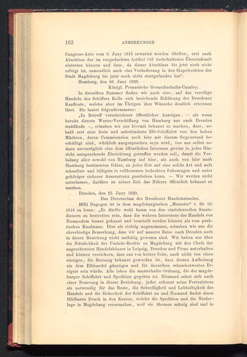 Congress-Acte vom 9. Juny 1815 erwartet werden dürften, erst nachAbschluss der im vorgedachten Artikel 11G vorbehaltenen Übereinkunfteintreten können und dass, da dieser Abschluss bis jetzt noch nichterfolgt ist, namentlich auch eine Veränderung in den StapelrechtenderStadt Magdeburg bis jetzt noch nicht stattgefunden hat“.