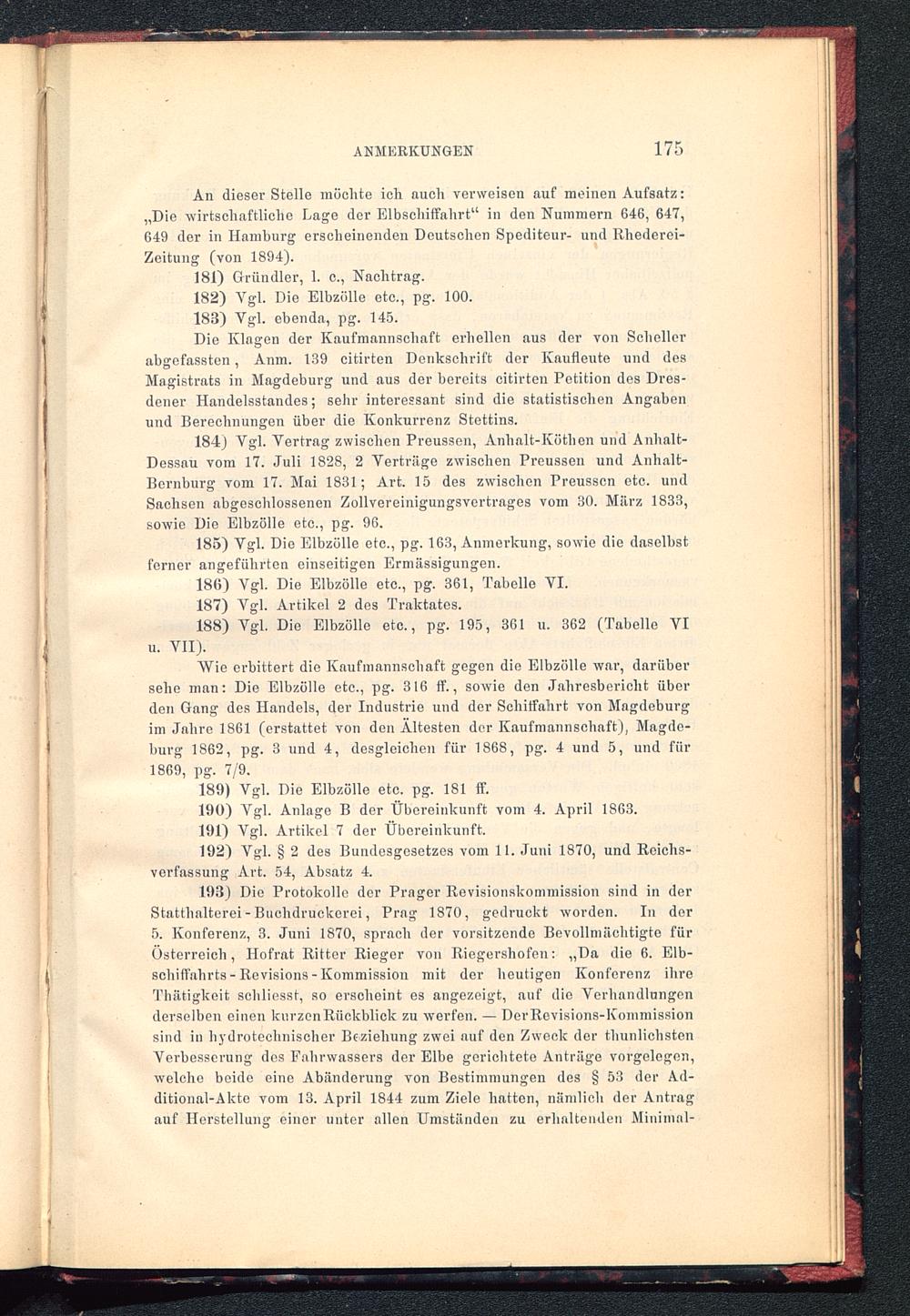 185) Vgl. Die Elbzölle etc., pg. 163, Anmerkung, sowie die daselbstferner angeführten einseitigen Ermässigungen.