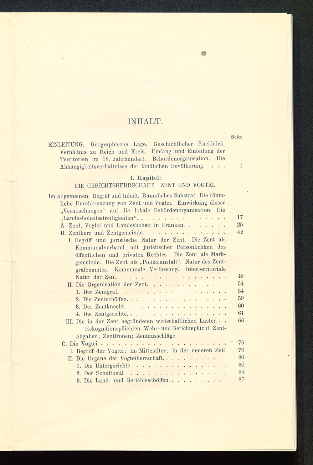 Im allgemeinen. Begriff und Inhalt. Räumliches Substrat. Die räum-liche Durchkreuzung von Zent und Vogtei. Einwirkung dieser„Vermischungen“ auf die lokale Behördenorganisation. Die