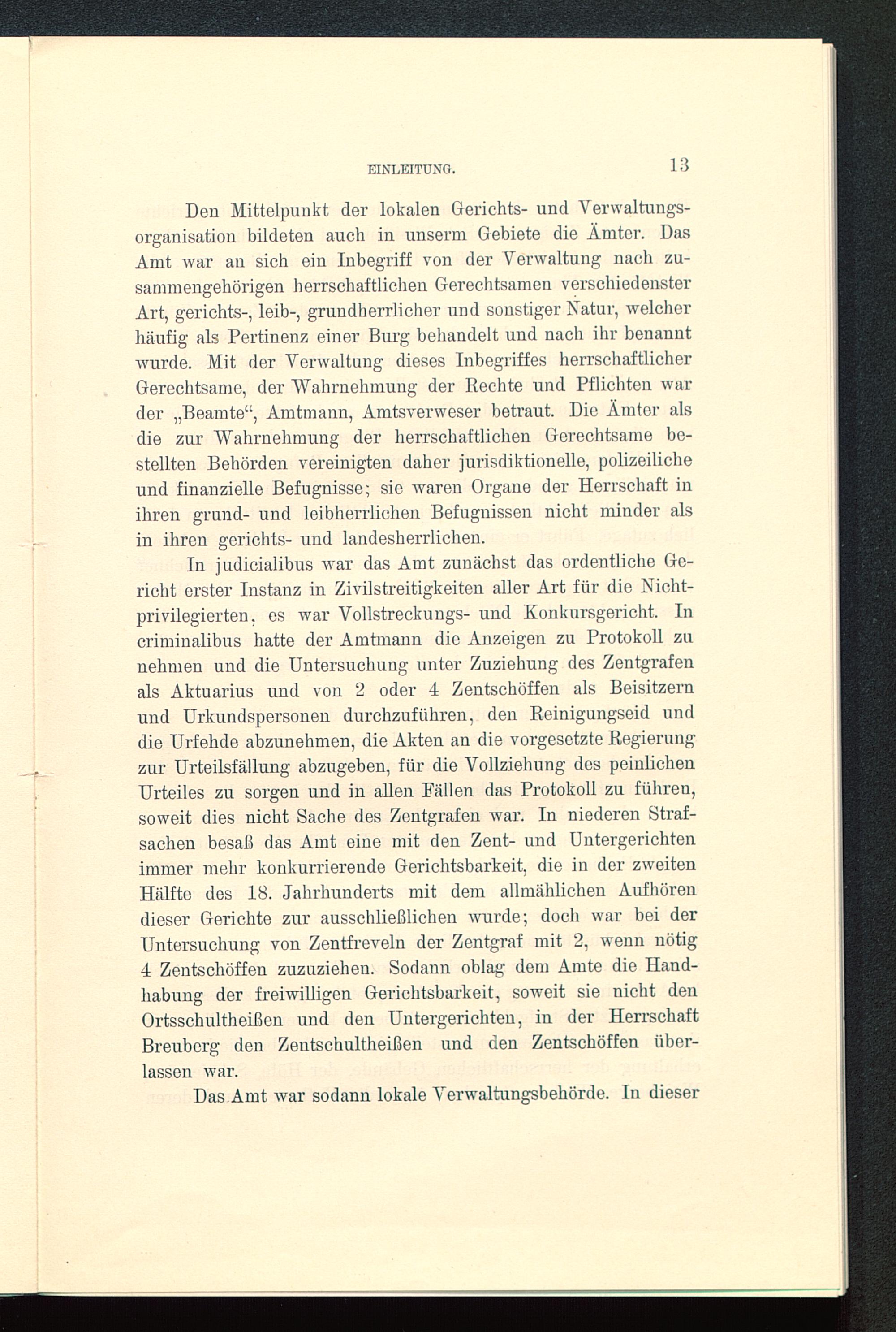 Den Mittelpunkt der lokalen Gerichts- und Verwaltungs-Organisation bildeten auch in unserm Gebiete die Ämter. DasAmt war an sich ein Inbegriff von der Verwaltung nach zu-sammengehörigen herrschaftlichen Gerechtsamen verschiedensterArt, gerichts-, leib-, gründherrlicher und sonstiger Natur, welcherhäufig als Pertinenz einer Burg behandelt und nach ihr benanntwurde. Mit der Verwaltung dieses Inbegriffes herrschaftlicherGerechtsame, der ‘Wahrnehmung der Rechte und Pflichten warder „Beamte “, Amtmann, Amtsverweser betraut. Die Ämter alsdie zur Wahrnehmung der herrschaftlichen Gerechtsame be-stellten Behörden vereinigten daher jurisdiktionelle, polizeilicheund finanzielle Befugnisse; sie waren Organe der Herrschaft inihren grund- und leibherrlichen Befugnissen nicht minder alsin ihren gerichts- und landesherrlichen.