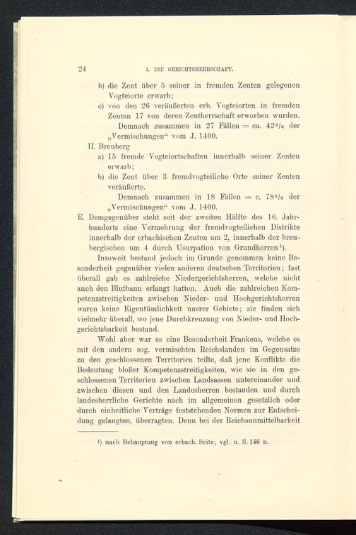 E. Demgegenüber steht seit der zweiten Hälfte des 16. Jahr-hunderts eine Vermehrung der fremdvogteilichen Distrikteinnerhalb der erbachischen Zenten um 2, innerhalb der breu-bergischen um 4 durch Usurpation von Grundherren 1 ).