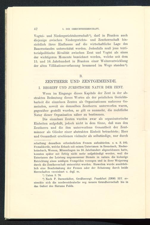 Die einzelnen Zenten wurden zwar als organisatorischeEinheiten aufgefaßt, jedoch nicht in dem Sinne, daß man denZentherrn und die ihm unterworfene Gesamtheit der Zent-männer als Glieder einer abstrakten Einheit betrachtete; Herrund Gesamtheit erschienen vielmehr als selbständige, nur durch