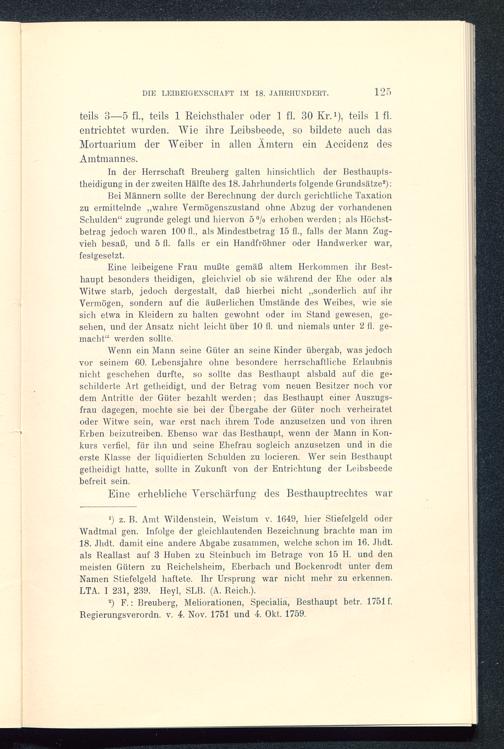 teils 3—5 fl., teils 1 Reichsthaler oder 1 fl. 30 Kr. 1 ), teils 1 fl.entrichtet wurden. Wie ihre Leibsbeede, so bildete auch dasMortuarium der Weiber in allen Ämtern ein Accidenz desAmtmannes.