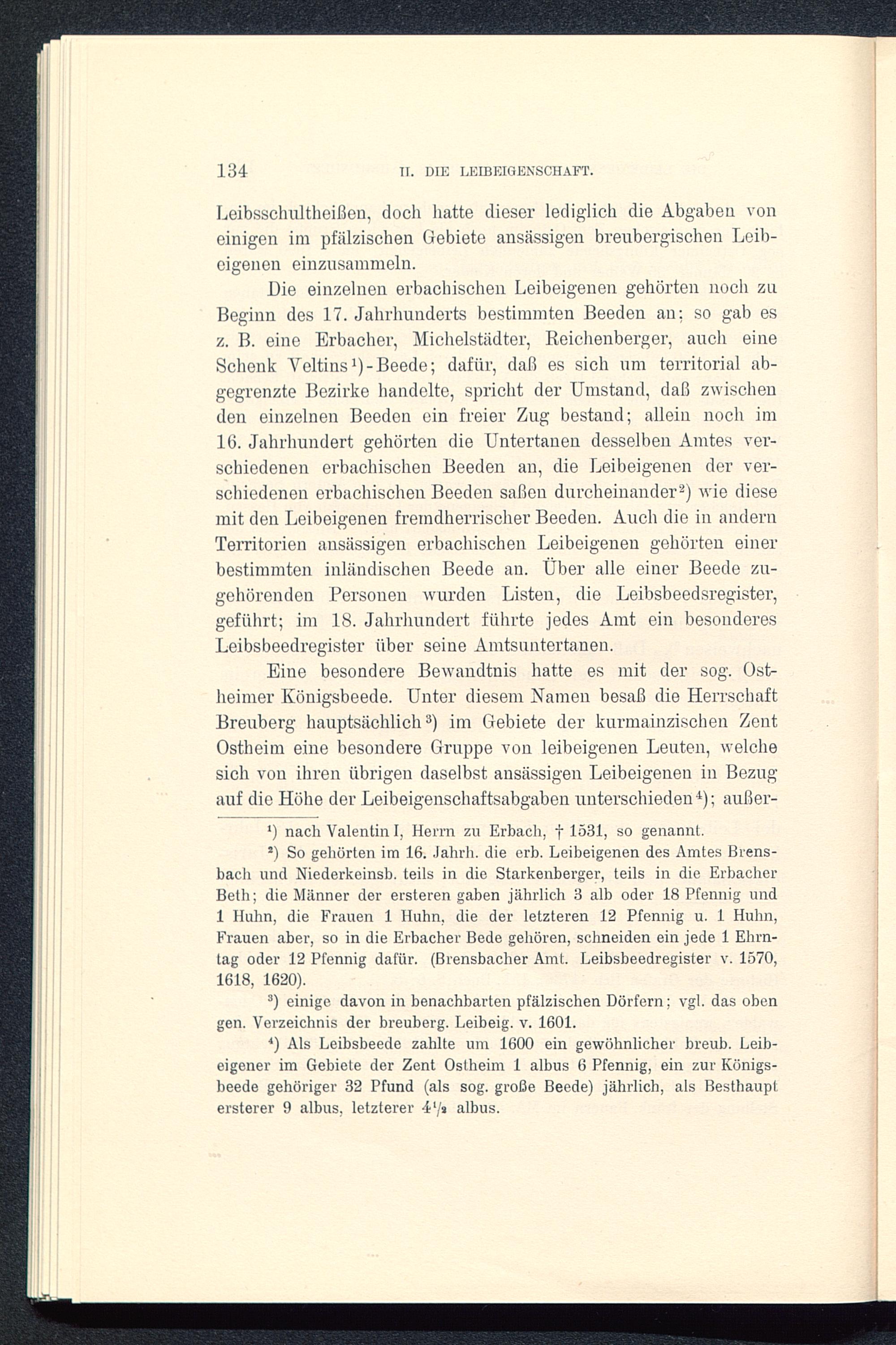 *) So gehörten im 16. Jahrh. die erb. Leibeigenen des Amtes Brens-bacli und Niederkeinsb. teils in die Starkenberger, teils in die ErbacherBeth; die Männer der ersteren gaben jährlich 3 alb oder 18 Pfennig und