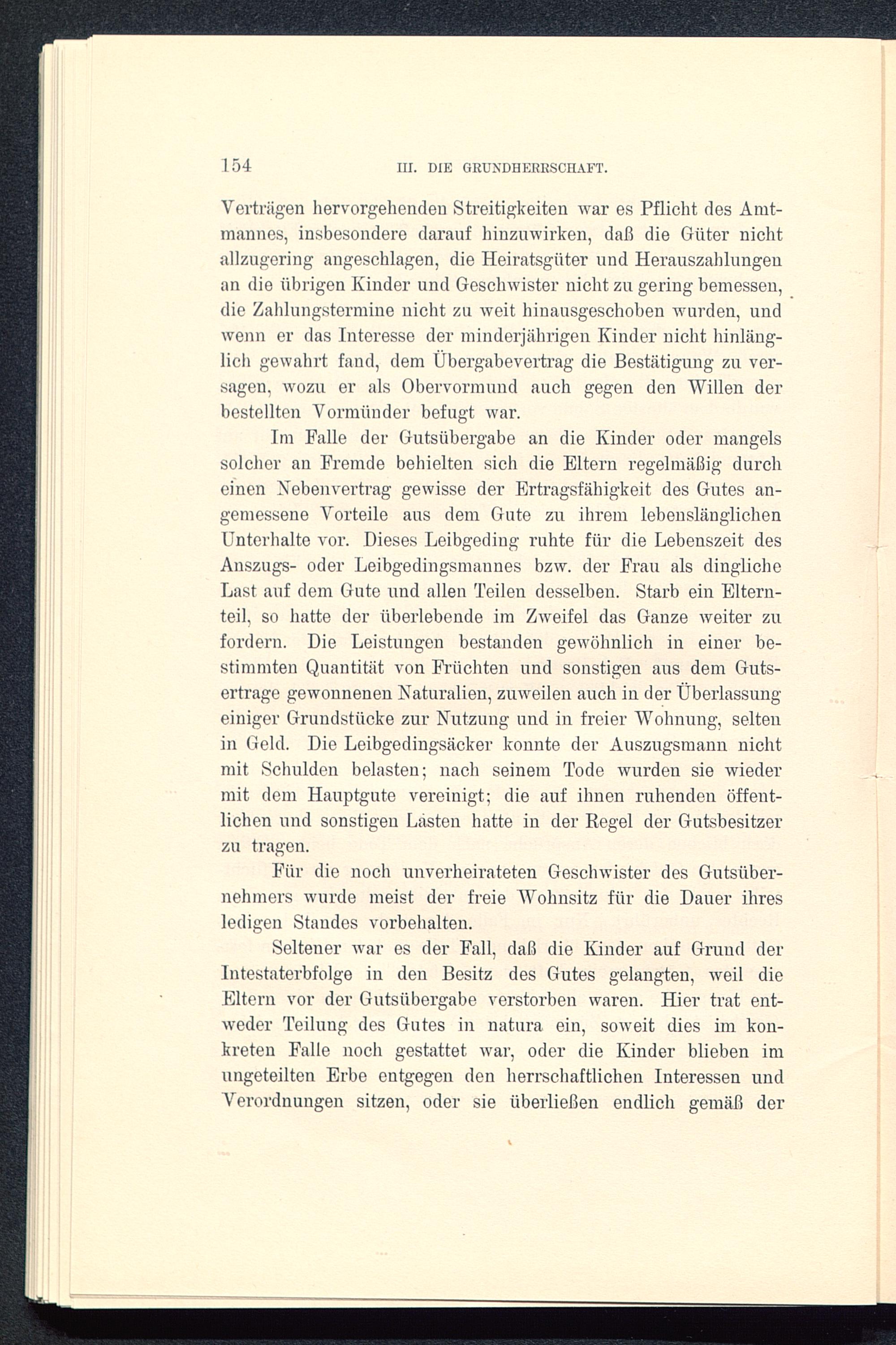 Seltener war es der Fall, daß die Kinder auf Grund derIntestaterbfolge in den Besitz des Gutes gelangten, weil dieEltern vor der Gutsübergabe verstorben waren. Hier trat ent-weder Teilung des Gutes in natura ein, soweit dies im kon-kreten Falle noch gestattet war, oder die Kinder blieben imungeteilten Erbe entgegen den herrschaftlichen Interessen undVerordnungen sitzen, oder sie überließen endlich gemäß der