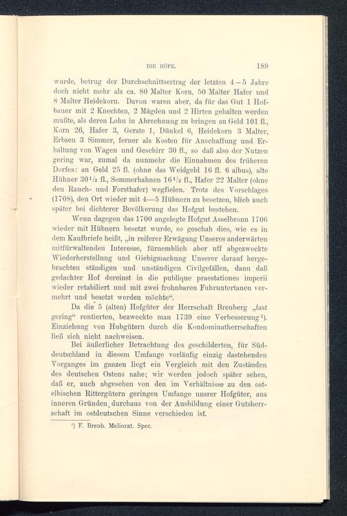 Bei äußerlicher Betrachtung des geschilderten, für Süd-deutschland in diesem Umfange vorläufig einzig dastehendenVorganges im ganzen liegt ein Vergleich mit den Zuständendes deutschen Ostens nahe; wir werden jedoch später sehen,daß er, auch abgesehen von den im Verhältnisse zu den ost-elbischen Rittergütern geringen Umfange unsrer Hofgüter, ausinneren Gründen % durchaus von der Ausbildung einer Gutsherr-schaft im ostdeutschen Sinne verschieden ist.