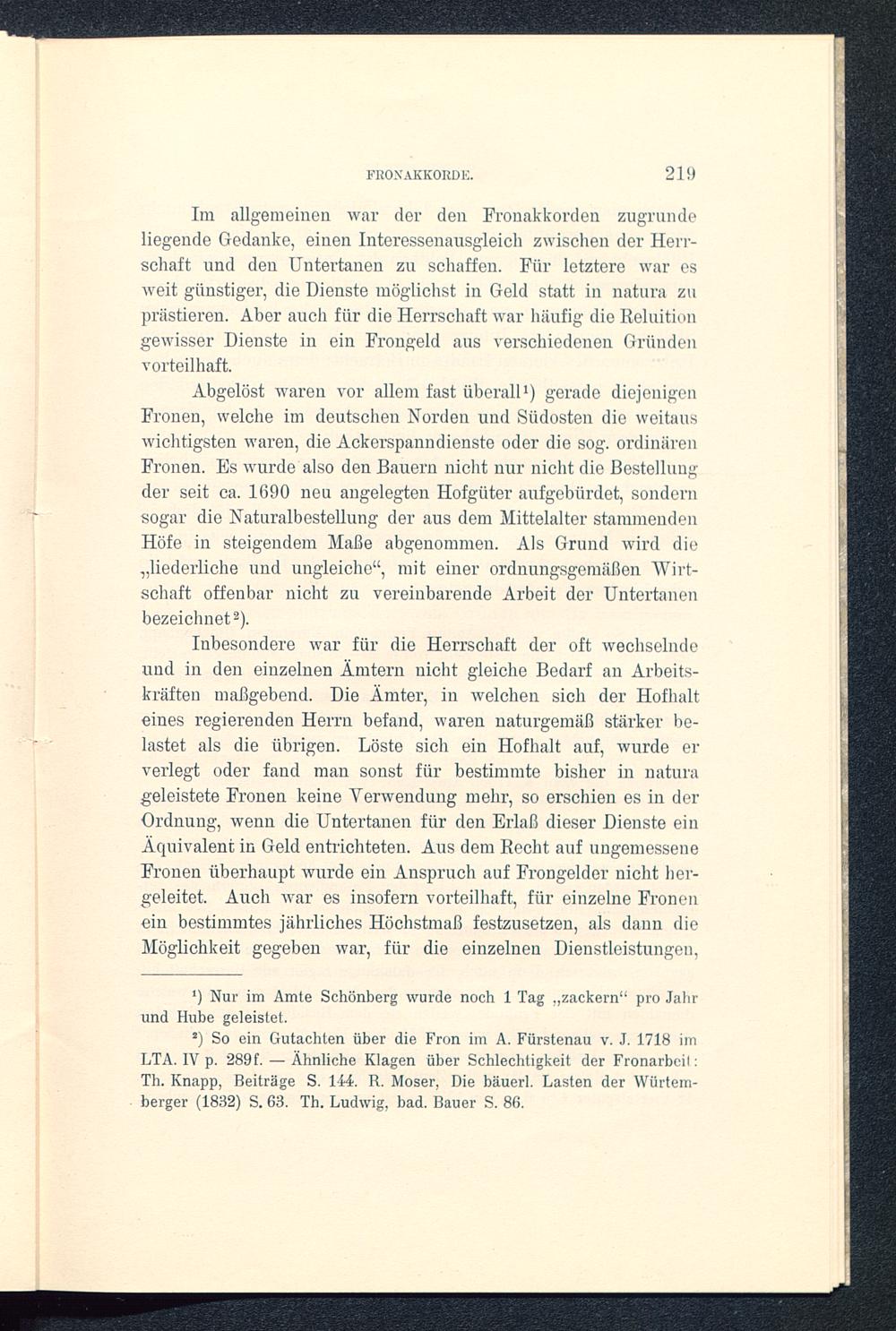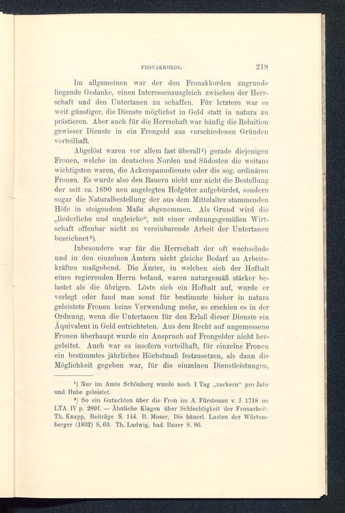 s ) So ein Gutachten über die Fron im A. Fürstenau v. J. 1718 imLTA. IV p. 289f. — Ähnliche Klagen über Schlechtigkeit der Fronarbcil:Th. Knapp, Beiträge S. 144. R. Moser, Die bäuerl. Lasten der Würtem-berger (1832) S. 63. Th. Ludwig, bad. Bauer S. 86.