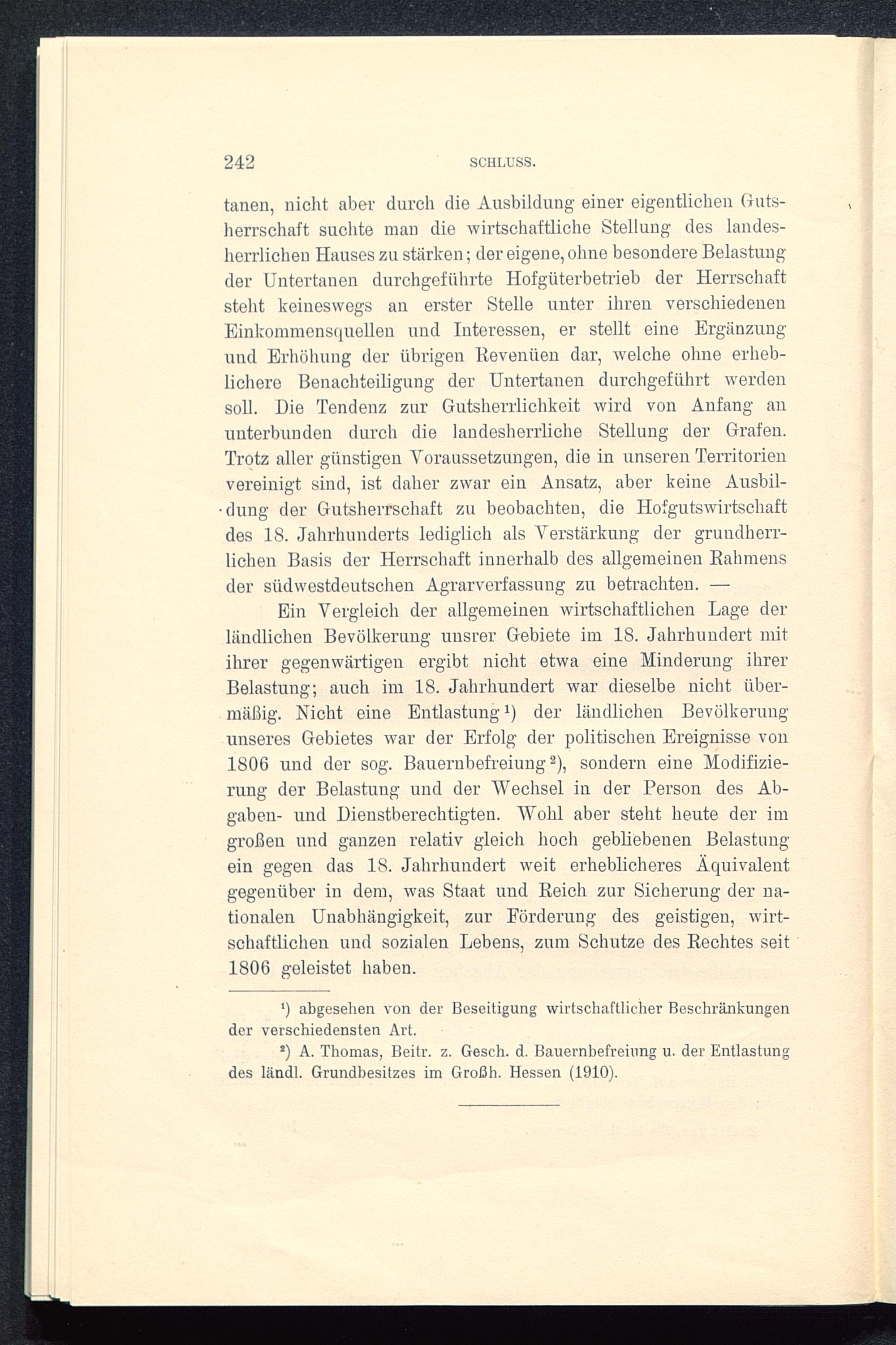 *) A. Thomas, Beitr. z. Geseh. d. Bauernbefreiung u. der Entlastungdes ländl. Grundbesitzes im Großh. Hessen (1910).