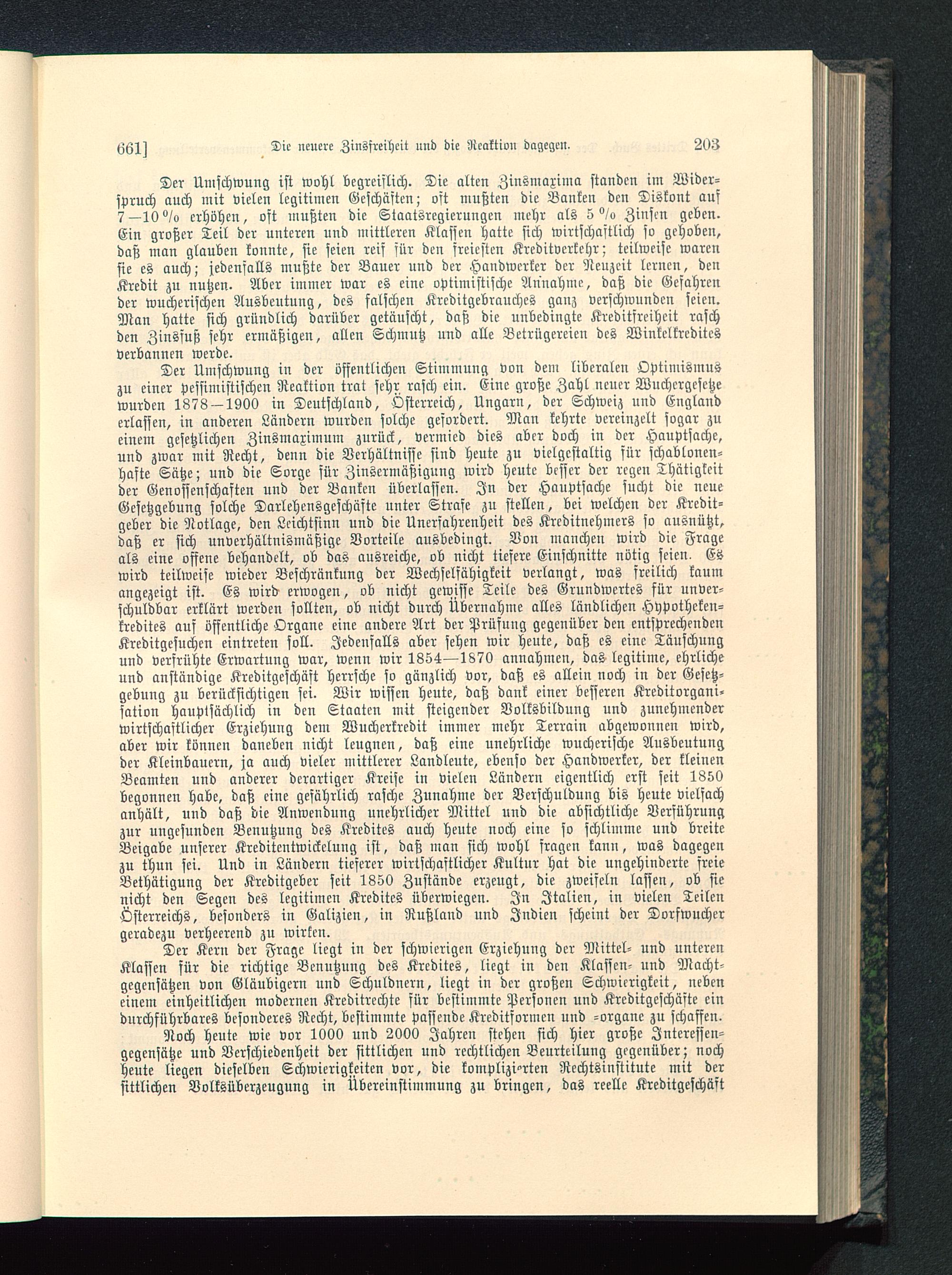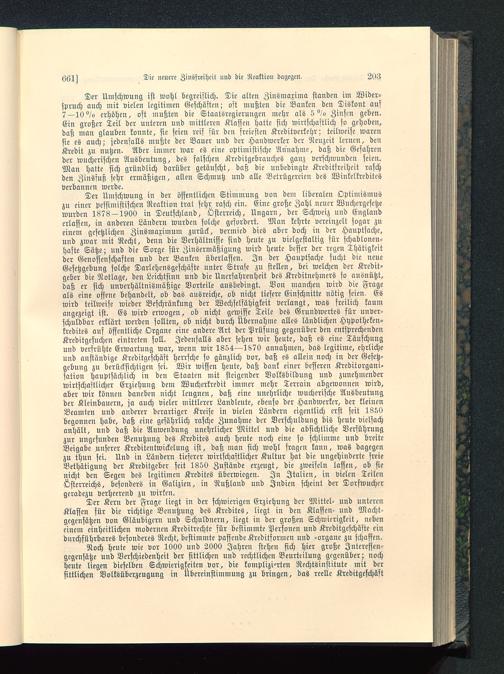 Der Kern der Frage liegt in der schwierigen Erziehung der Mittel- und unterenKlassen für die richtige Benutzung des Kredites, liegt in den Klassen- und Macht-gegcnsätzen von Gläubigern und Schuldnern, liegt in der großen Schwierigkeit, nebeneinem einheitlichen modernen Kreditrechte für bestimmte Personen und Kreditgeschäfte eindurchführbares besonderes Recht, bestimmte passende Kreditformen und -organc zu schaffen.