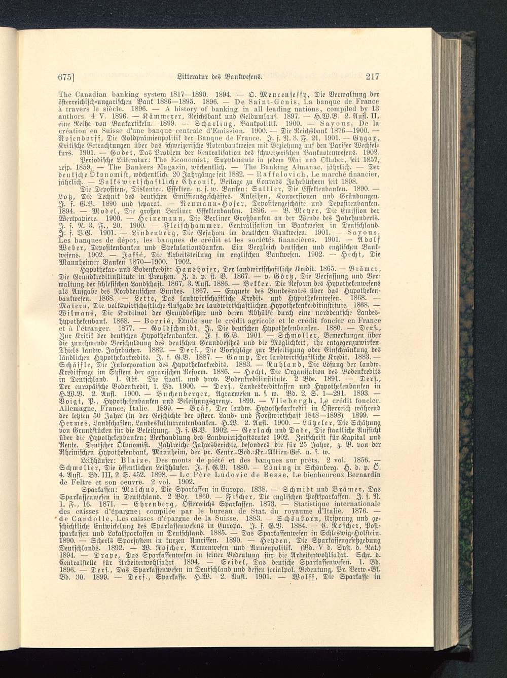 Die Depositen-, Diskonto-, Effekten- n. s. w. Banken: Sattler, Die Cffektenbanken. 1890. —Loh, Die Technik des deutschen Einissionsgeschäftes. Anleihen, Konversionen nnd Gründungen.I. f. G.V. 1890 und separat. — Ncumann-Hoser, Depositengejchäfte und Depositenbanken.1894. — Model, Die großen Berliner Effektcnbanken. 1396. — 'B. Meyer, Die Emission derWertpapiere. 1900. — Hcinemann, Die Berliner Großbanken an der Wende des Jahrhunderts.I. f. N. 3. F., 20. 1900. — Fleischhnmmer, Centralisation im Bankwesen in Deutschland. I. f. BG. 1901. — Lindcnbcrg, Die Gefahren im deutschen Bankwesen. 1901. — 8a,vou8,l^ss ba.no.us8 äs äsxot, ls8 ba.ni^lS8 äs ereäit st Iss soeiets8 ünansiere8. 1901. — AdolfWeber, Depositenbanken und Sveknlationsbankcn. Ein Vergleich deutschen nnd englischen Bank-wesens. 1902. — Jaffe, Die Arbeitsteilung im englischen Bankwesen. 1902. — Hecht , DieMannheimer Banken 1870-1900. 1902.