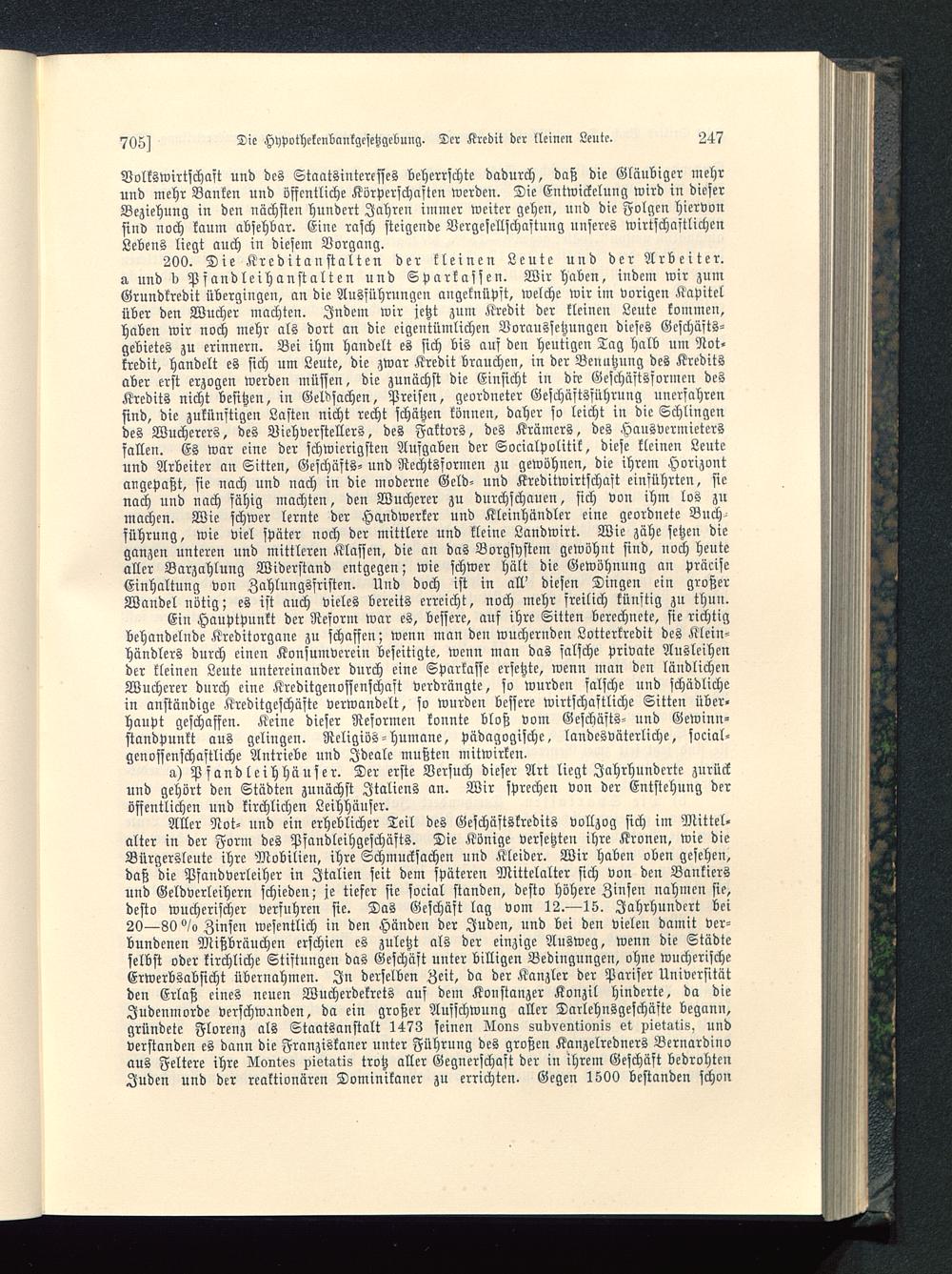 200. Die Kreditanstalten der kleinen Leute und der Arbeiter,g, und d Psandleihanstalten und Sparkassen. Wir haben, indem wir zumGrundkredit übergingen, an die Ausführungen angeknüpft, welche wir im vorigen Kapitelüber den Wucher machten. Indem wir jetzt zum Kredit der kleinen Leute kommen,haben wir noch mehr als dort an die eigentümlichen Voraussetzungen dieses Gcschästs-gebietes zu erinnern. Bei ihm handelt es sich bis auf den heutigen Tag halb um Not-kredit, handelt es sich um Leute, die zwar Kredit brauchen, in der Benutzung des Kreditsaber erst erzogen werden müssen, die zunächst die Einsicht in dir Geschäftsformen desKredits nicht besitzen, in Geldsachen, Preisen, geordneter Geschäftsführung unerfahrensind, die zukünftigen Lasten nicht recht schätzen können, daher so leicht in die Schlingendes Wucherers, des Viehverstellers, des Faktors, des Krämers, des Hausvermieterssallen. Es war eine der schwierigsten Aufgaben der Socialpolitik, diese kleinen Leuteund Arbeiter au Sitten, Geschäfts- und Rechtsformen zu gewöhnen, die ihrem Horizontangepaßt, sie nach und nach in die moderne Geld- und Kreditwirtschaft einführten, sienach und nach fähig machten, den Wucherer zu durchschauen, sich von ihm los zumachen. Wie schwer lernte der Handwerker und Kleinhändler eine geordnete Bnch^sührung, wie viel später noch dcr mittlere und kleine Landwirt. Wie zähe setzen dieganzen unteren und mittleren Klassen, die an das Borgsystem gewöhnt sind, noch heutealler Barzahlung Widerstand entgegen; wie schwer hält die Gewöhnung an präciseEinhaltung von Zahlungsfristen. Und doch ist in all' diesen Dingen ein großerWandel nötig; es ist auch vieles bereits erreicht, noch mehr freilich künftig zu thun.