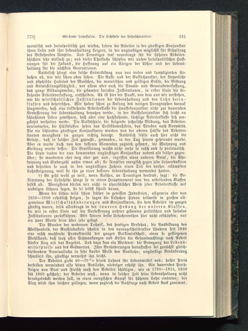 Wenn die Löhne teils schon früher in gewissen Industrien, allgemein aber von1850—1900 erheblich steigen, so lagen die Ursachen hievon teilweise in großen all-gemeinen Wirtschaftsänderungen und Konjunkturen, die dem Arbeiter im ganzengünstig waren, teils allerdings in der inneren Hebung der unteren Klassen,die wir in erster Linie auf die Verbesserung unserer gesamten politischen und socialenInstitutionen zurückführen. Wir können beide Ursachenreihen hier nicht erschöpfen; nurein paar Worte seien über jede gesagt. .