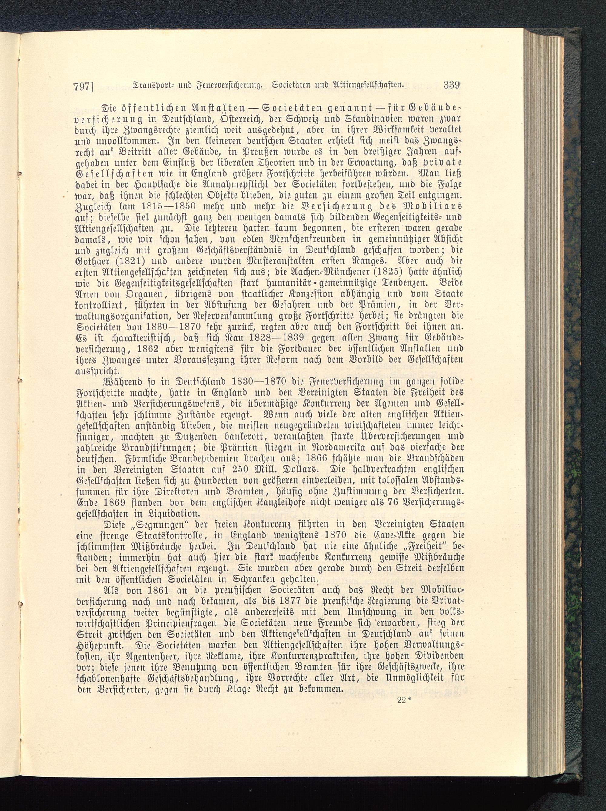 Diese „Segnungen" der sreien Konkurrenz führten in den Vereinigten Staaten eine strenge Staatskontrolle, in England wenigstens 1870 die Cave-Akte gegen dieschlimmsten Mißbräuche herbei. In Deutschland hat nie eine ähnliche „Freiheit" be-standen; immerhin hat auch hier die stark wachsende Konkurrenz gewisse Mißbräuchebei den Aktiengesellschaften erzeugt. Sie wurden aber gerade durch den Streit derselbenmit den öffentlichen Societäten in Schranken gehalten.