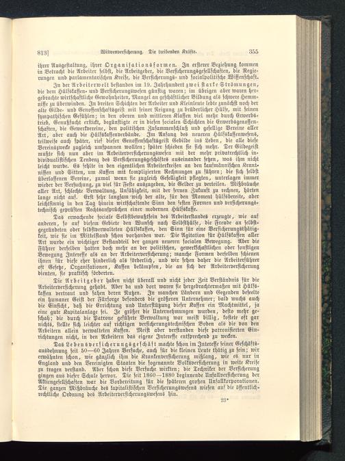 Das erwachende sociale Selbstbewußtsein des Arbeiterstandes erzeugte, wie aufanderen, so auf diesem Gebiete den Wunsch nach Selbsthülfe, die Freude an selbst-gegründetcn oder selbstverwalteten Hülfskassen, den Sinn für eine Versicherungsthätig-keit, wie sie im Mittelstand schon vorhanden war. Die Agitation für Hülfskassen allerArt wurde ein wichtiger Bestandteil der ganzen neueren socialen Bewegung. Aber dieFührer derselben hatten doch mehr an der politischen, gewerkschaftlichen oder sonstigenBewegung Interesse als an der Arbeiterversicherung; manche Formen derselben schienenihnen für diese eher hinderlich als förderlich, und wir sehen daher die Arbeiterführeroft Gesetze, Organisationen, Kassen bekämpfen, die an sich der Arbeiterversicherungdienten, sie praktisch förderten.