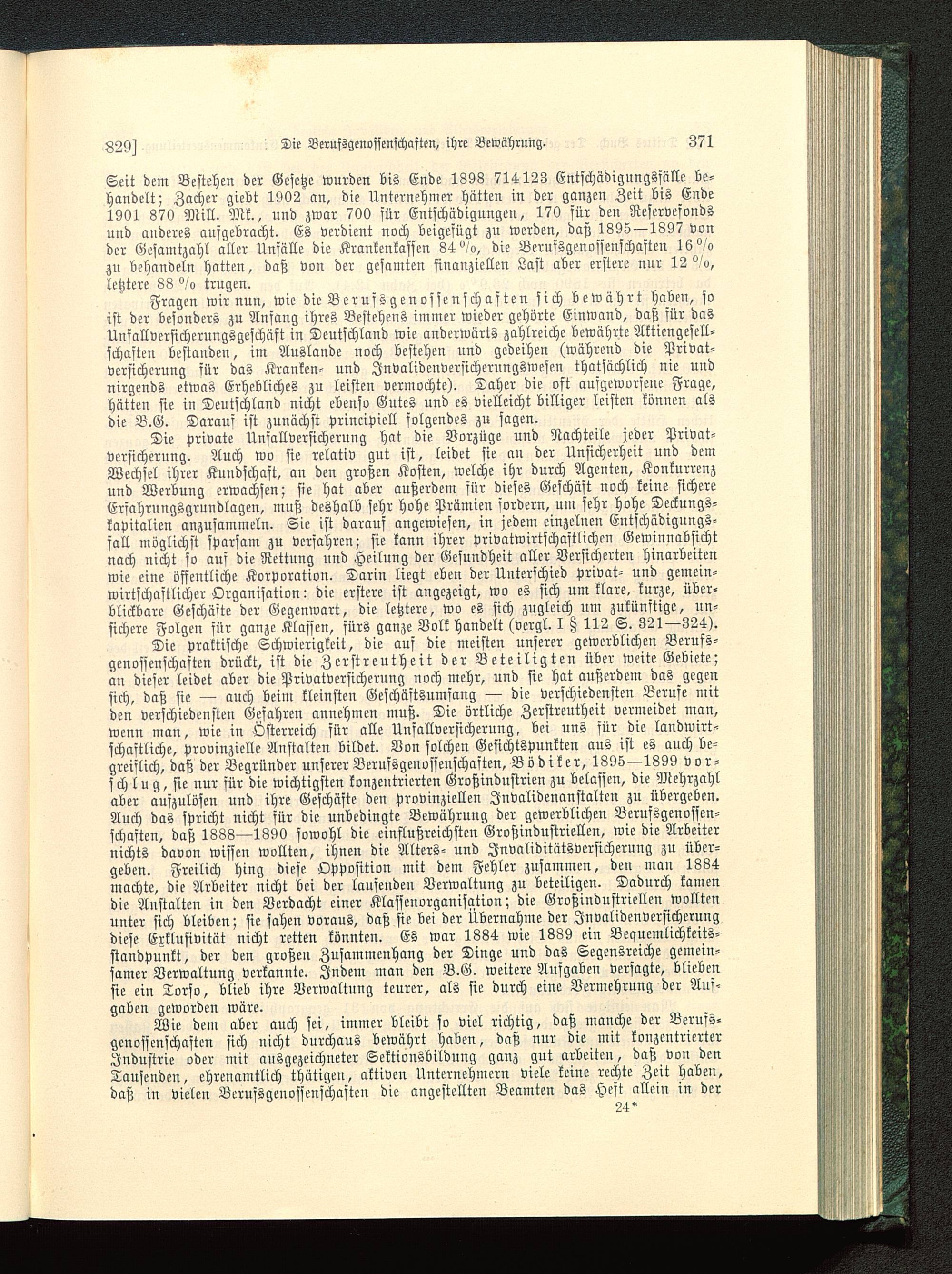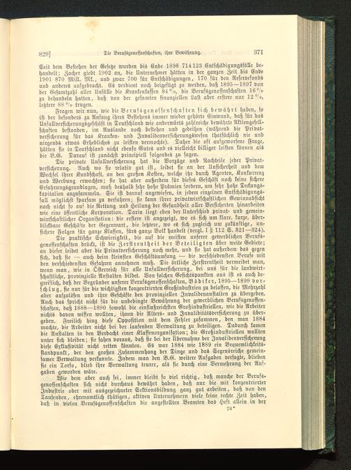 Seit dem Bestehen der Gesetze wurden bis Ende 1898 714123 Entschädigungssätze be-handelt; Zacher giebt 1902 an, die Unternehmer hätten in der ganzen Zeit bis Ende1901 870 Mill. Mk., und zwar 700 für Entschädigungen, 170 für den Reservefondsund anderes aufgebracht. Es verdient noch beigefügt zu werden, daß 1895—1897 vonder Gesamtzahl aller Unfälle die Krankenkassen 84°/a, die Berufsgenossenschaften 16°/ozu behandeln hatten, daß von der gesamten finanziellen Last aber erstere nur 12 °/o,letztere 88 °/o trugen.