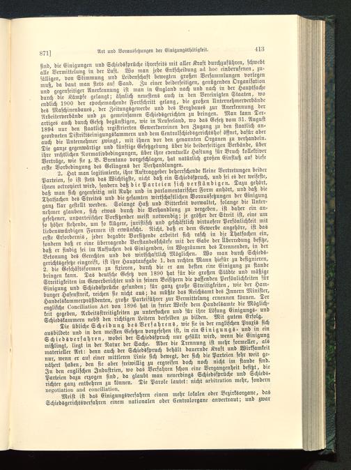 Meist ist das Einigungsverfahren einem mehr lokalen oder Bezirksorgane, dasSchiedsgerichtsverfahren einem nationalen oder Centralorgane anvertraut; und zwar