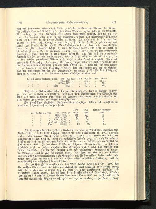 Nach diesem Zahlenbilde nahm die unterste Stufe ab, die drei anderen nahmenzu; aber die mittleren am stärksten. Der Satz vom Verschwinden des Mittelstandeskann also nicht allgemein wahr sein; die Zunahme der beiden obersten Stufen hatnach diesem Zahlenbilde gar nichts Beängstigendes.